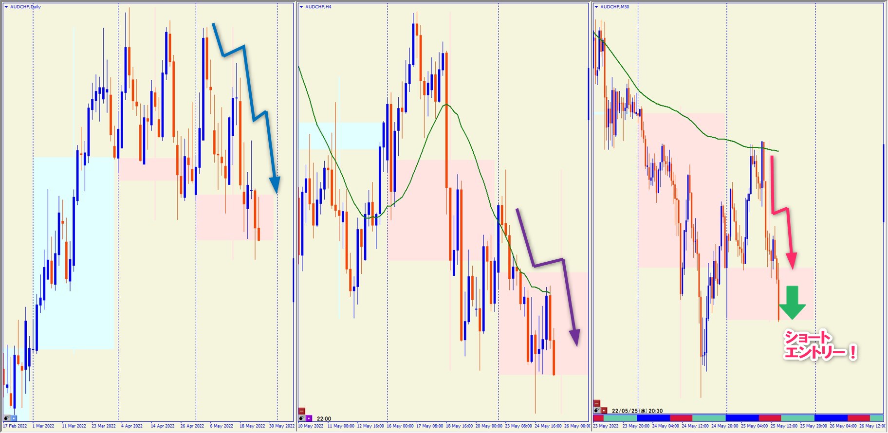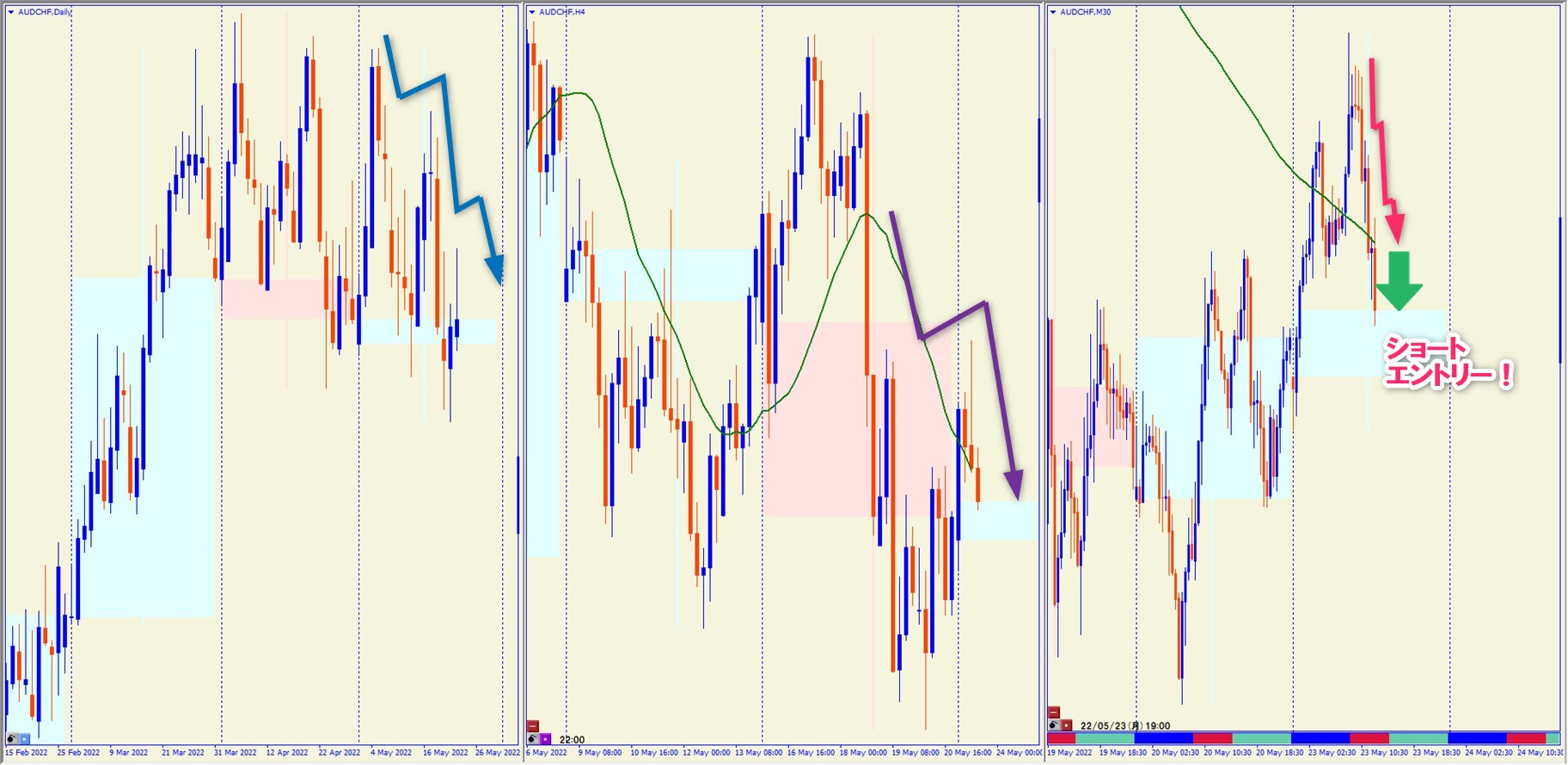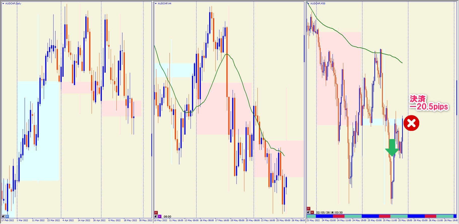 2022.5.25 20:30 AUDCHF ショート -20.5pips