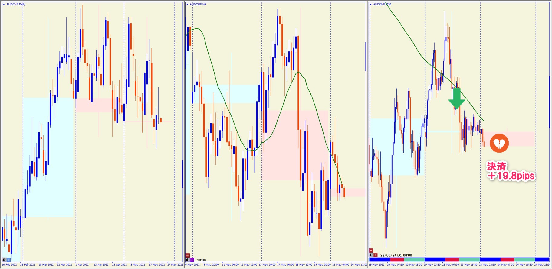 2022.5.23 19:00 AUDCHF ショート +19.8pips