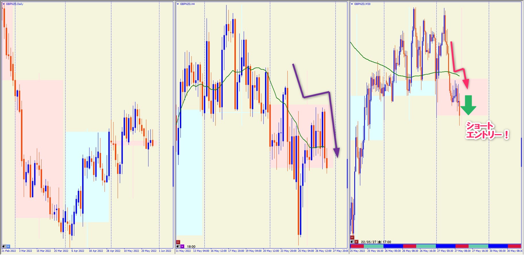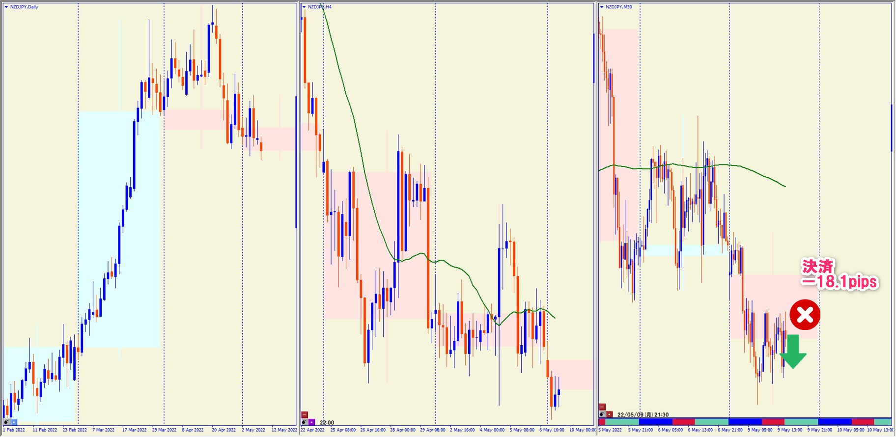 2022.5.9 22:30 NZDJPY ショート(再エントリー) +28.3pips