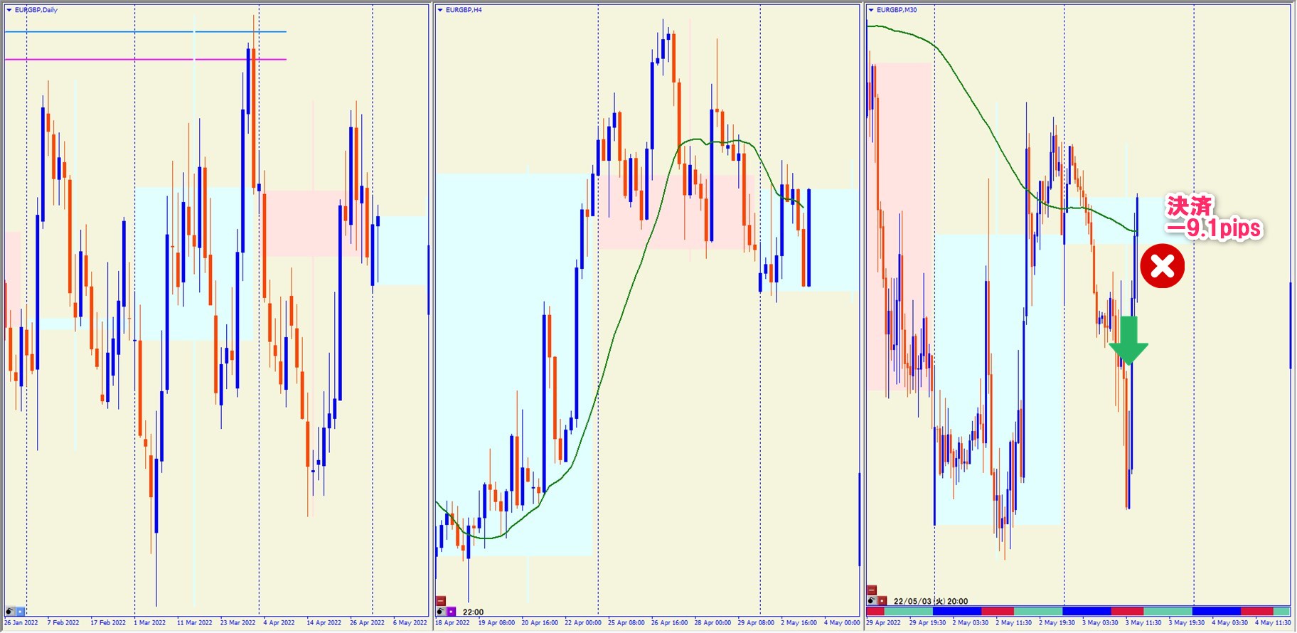 2022.5.3 16:00 EURGBP ショート -9.1pips