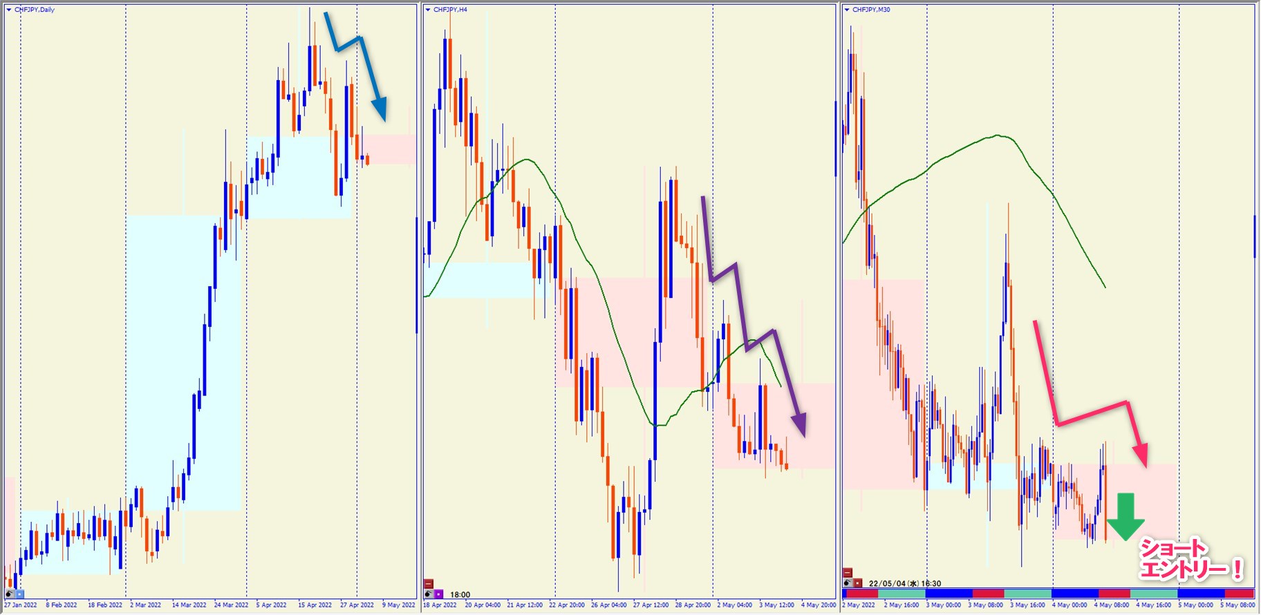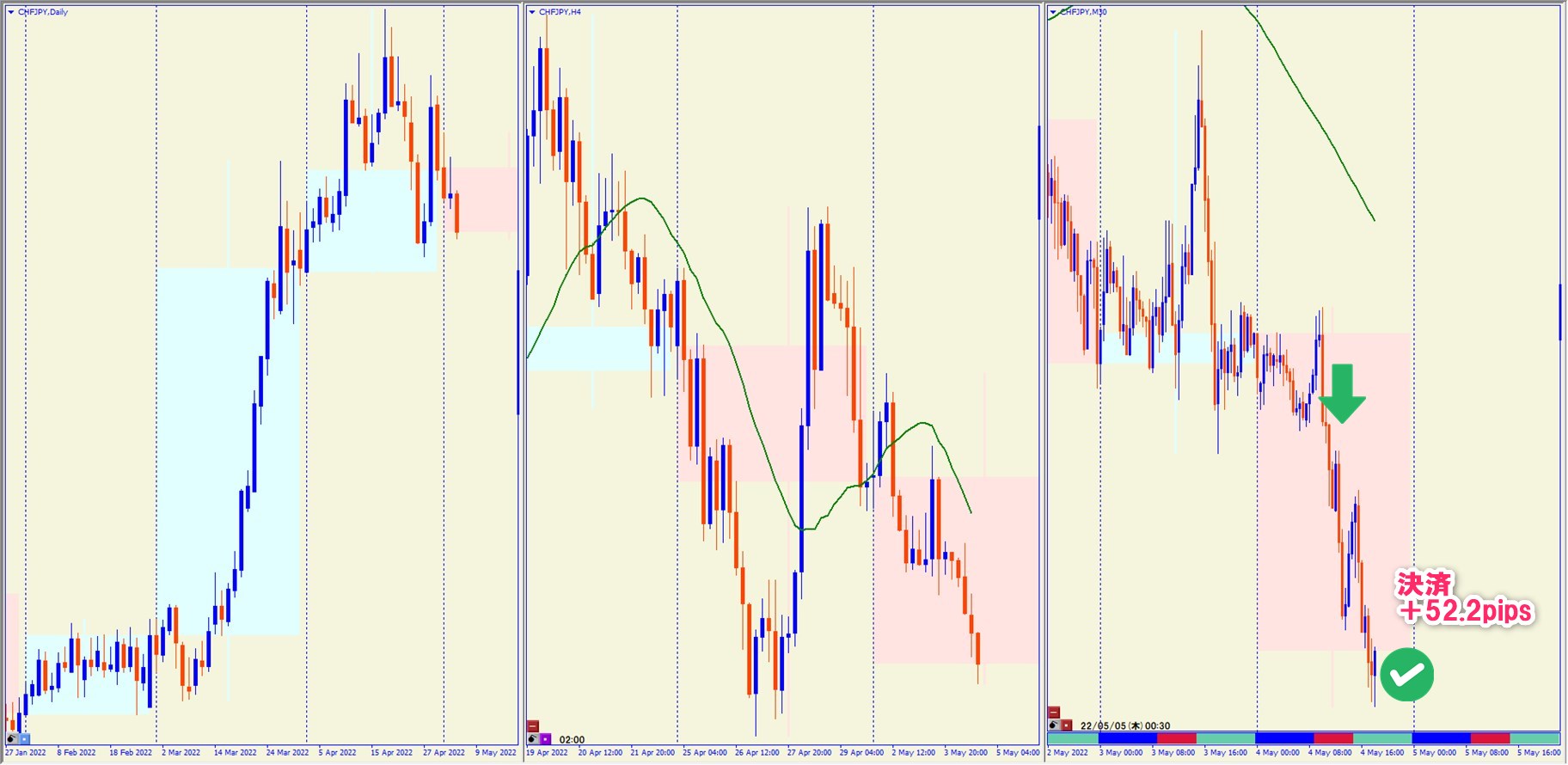 2022.5.4 16:30 CHFJPY ショート +52.2pips