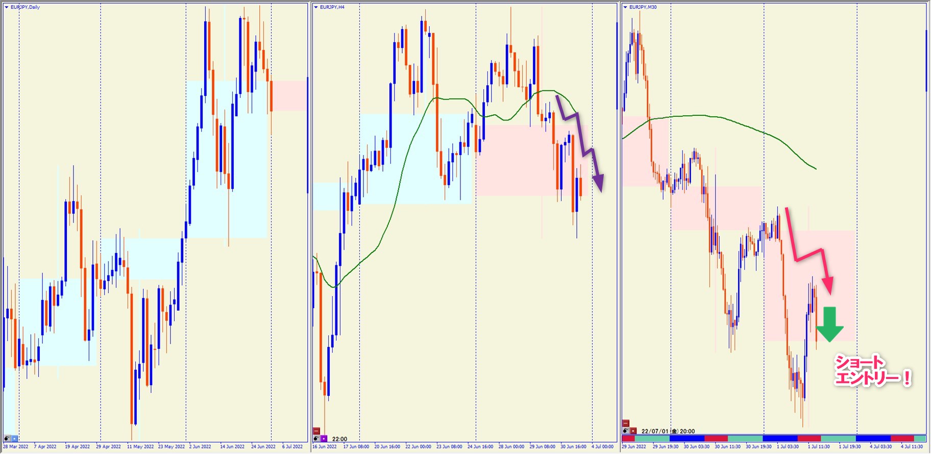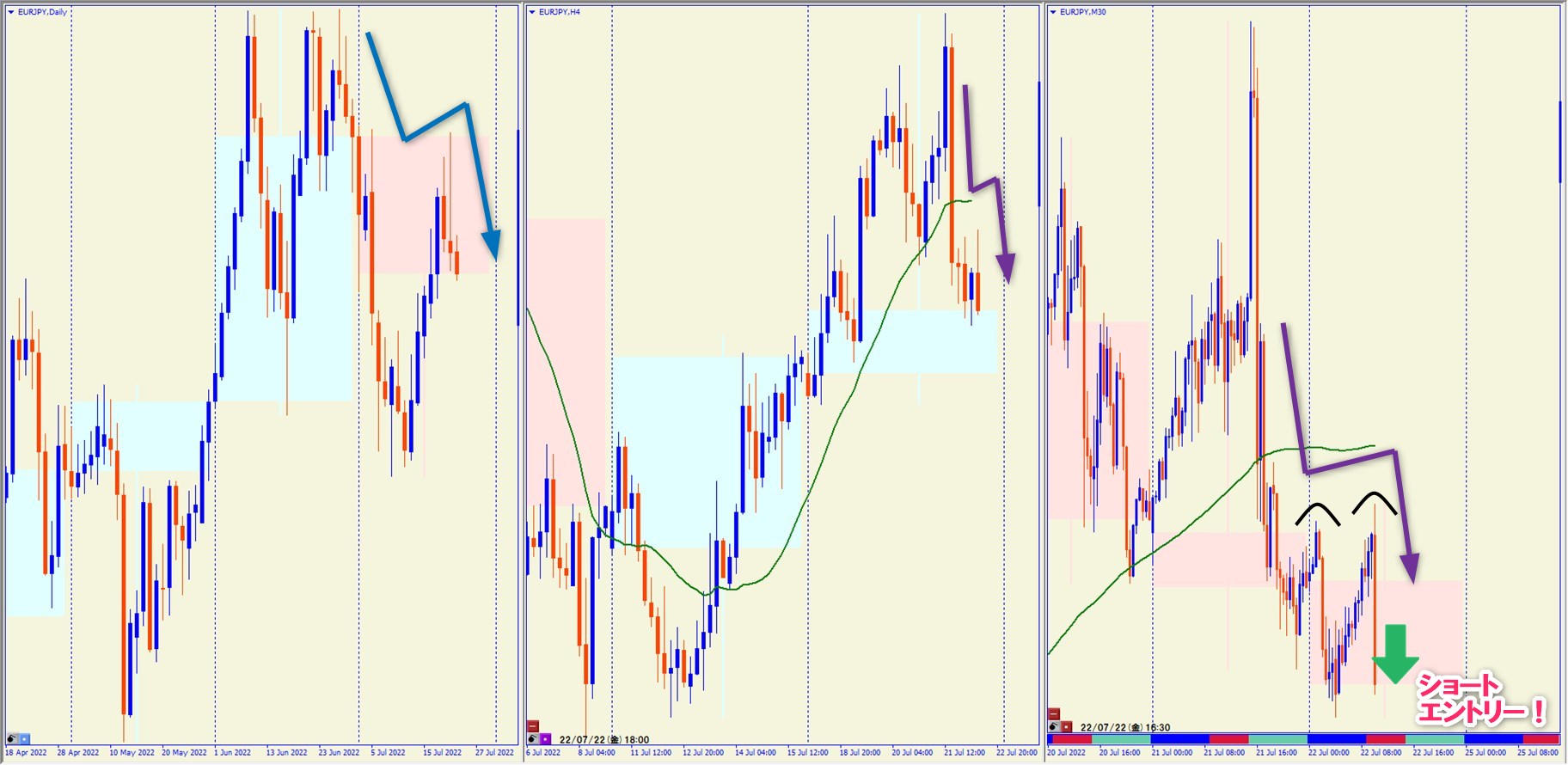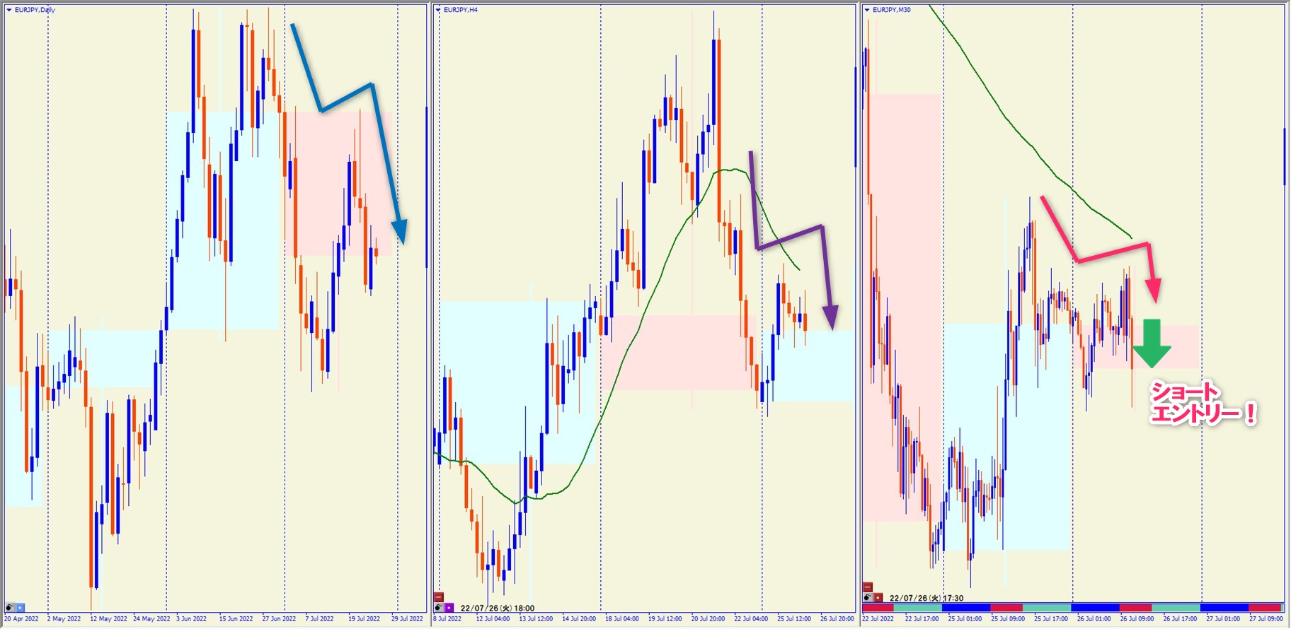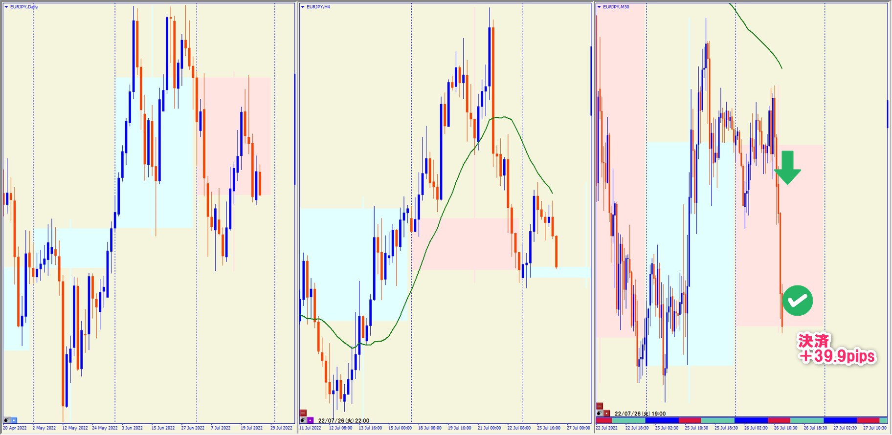 2022.7.26 17:30 EURJPY ショート +39.9pips