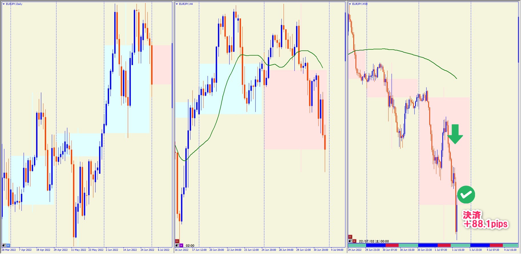 2022.7.1 20:00 EURJPY ショート +88.1pips