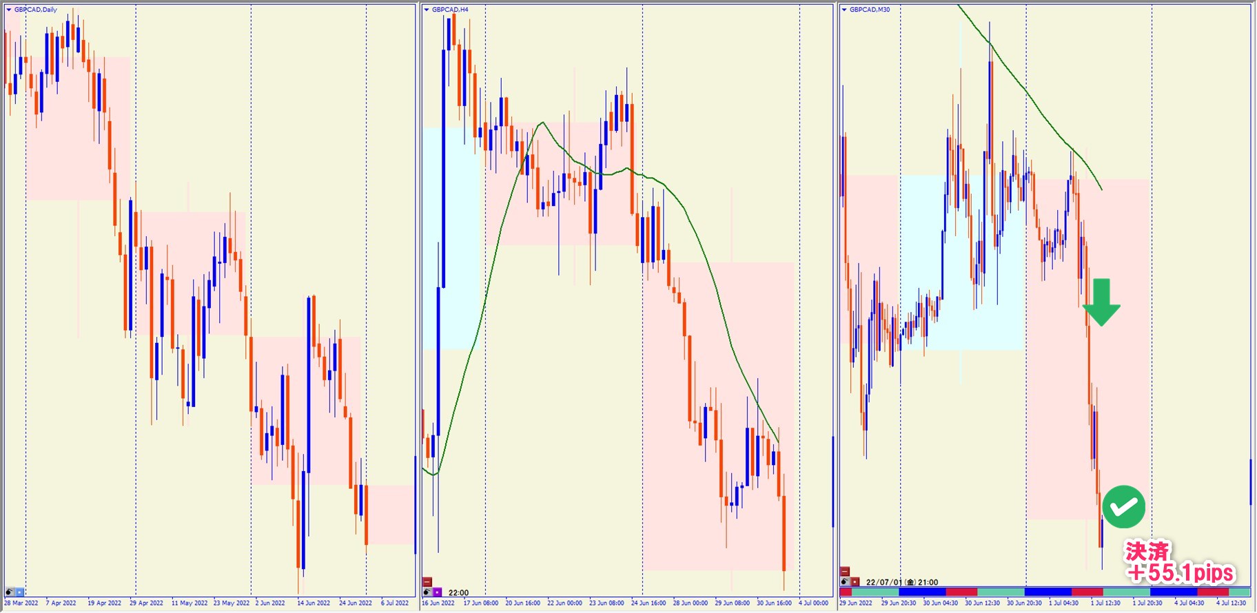 2022.7.1 18:00 GBPCAD ショート +55.1pips