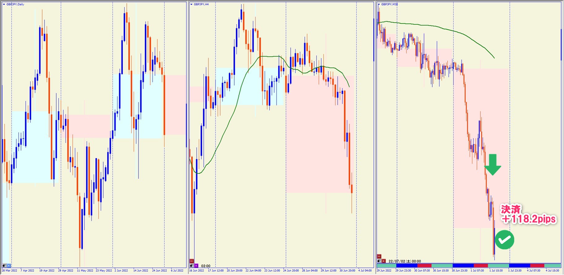 2022.7.1 20:00 GBPJPY ショート +118.2pips