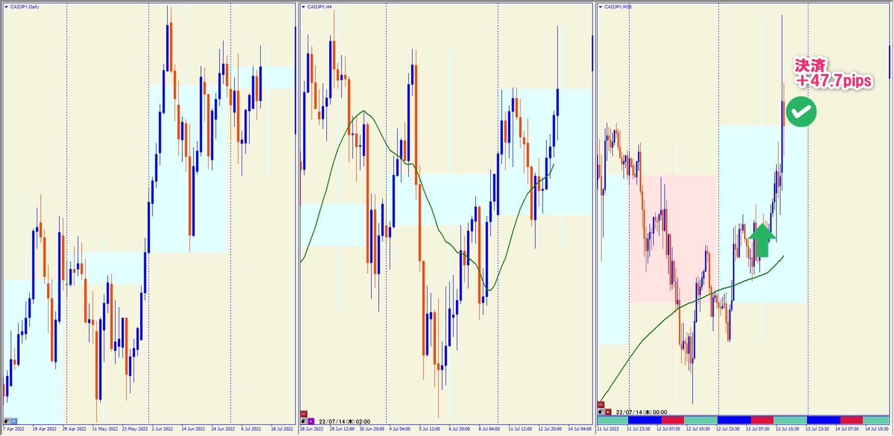 2022.7.13 16:00 CADJPY ロング +47.7pips