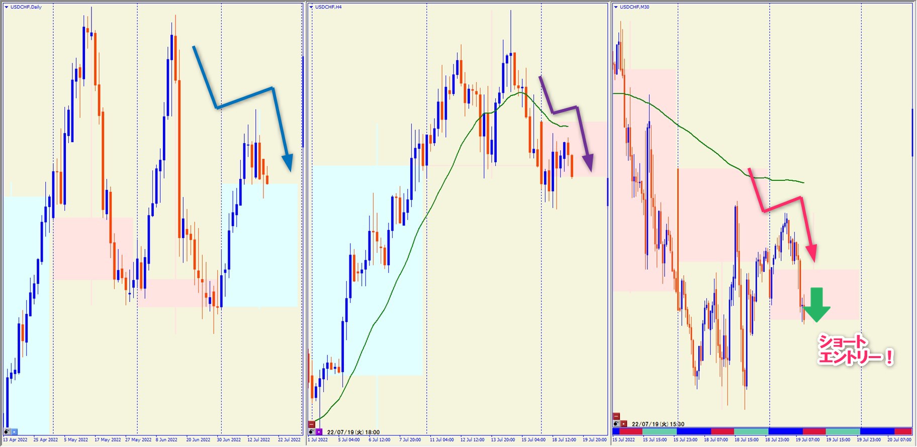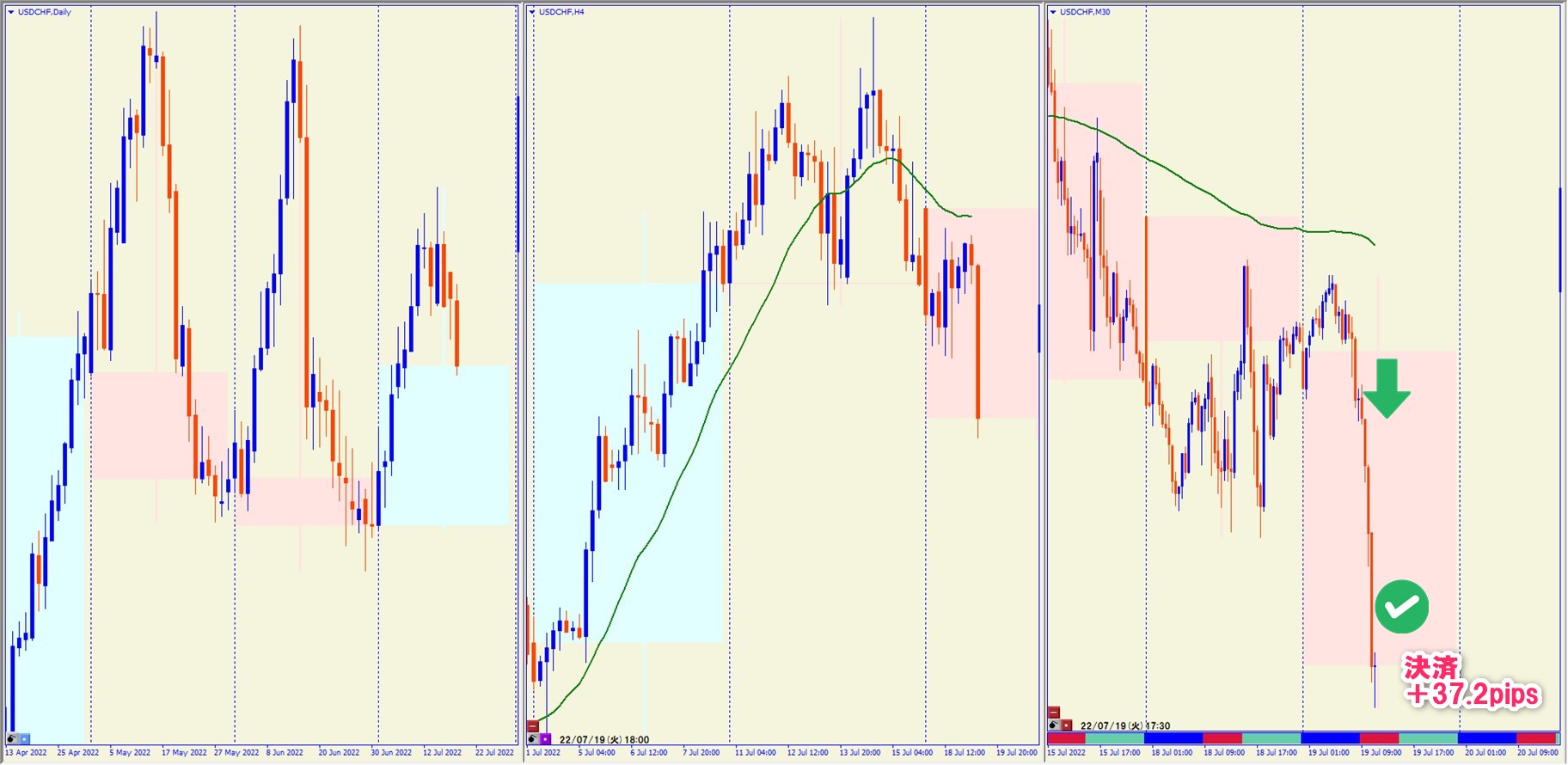 2022.7.19 15:30 USDCHF ショート +37.2pips