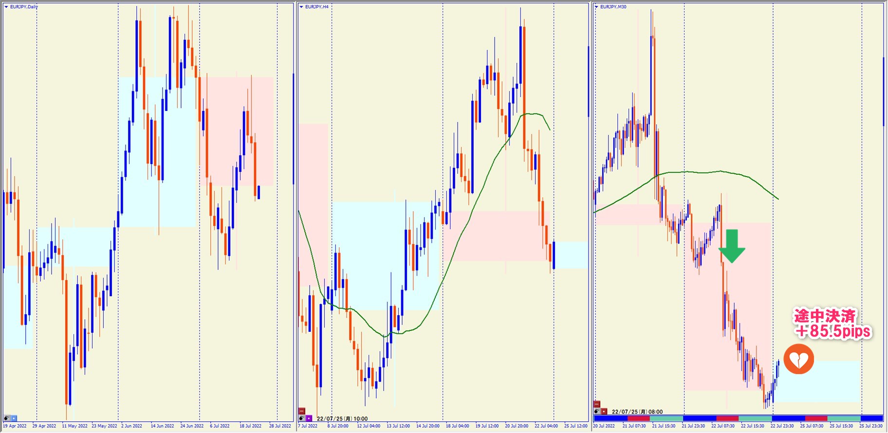 2022.7.22 16:30 EURJPY ショート +85.5pips