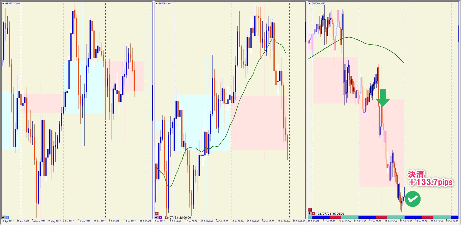 2022.7.22 16:30 GBPJPY ショート +133.7pips