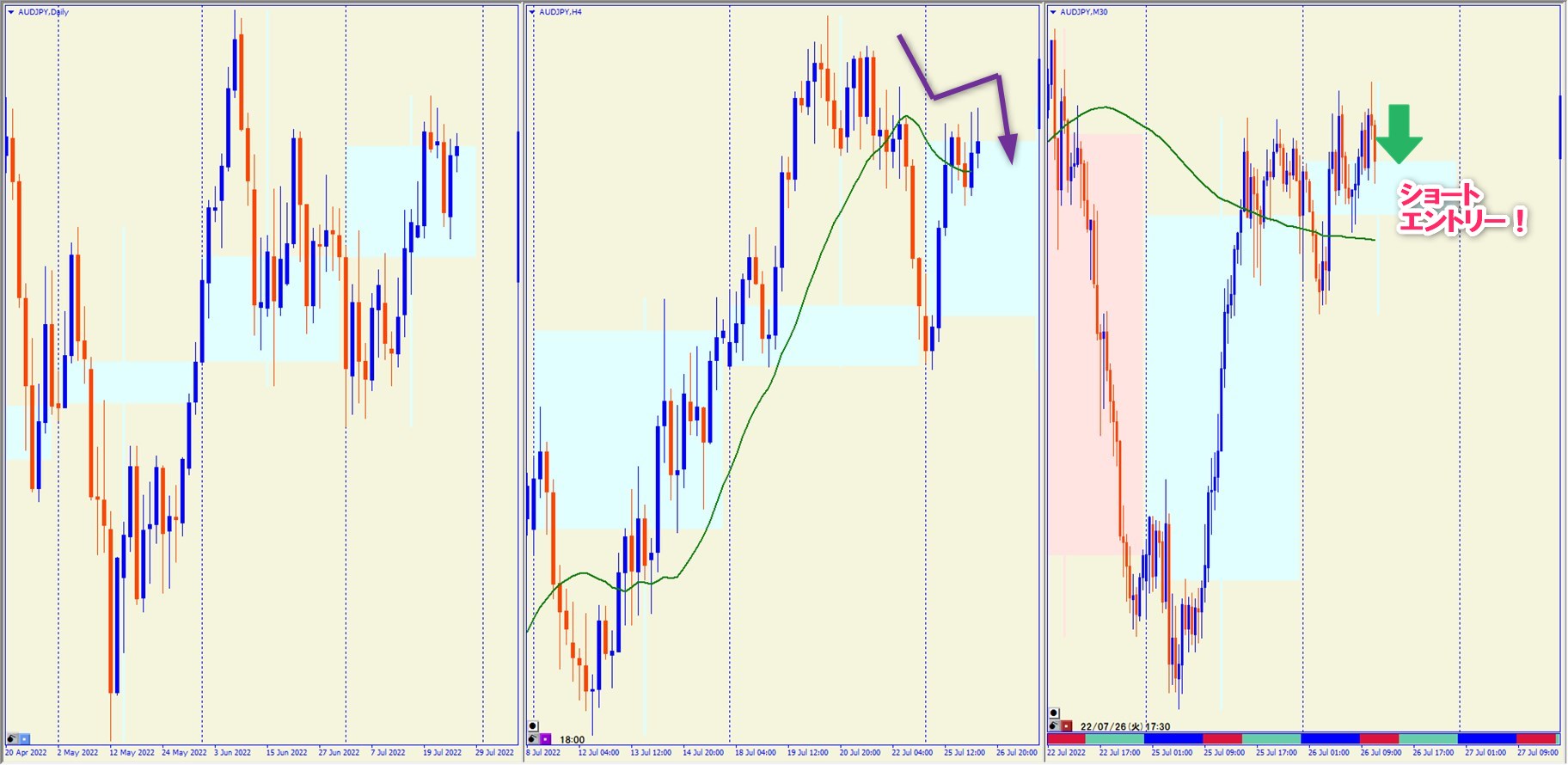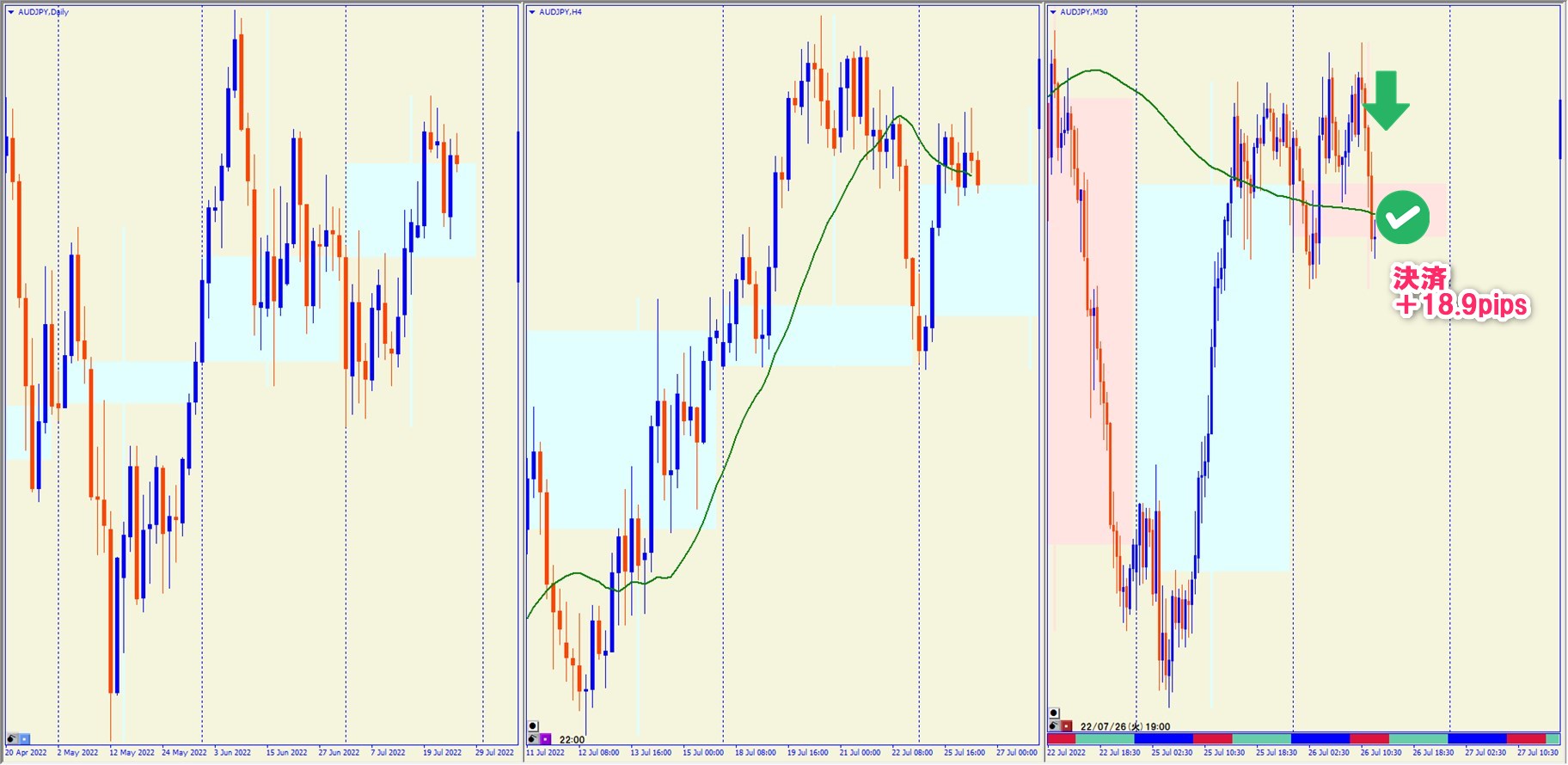 2022.7.26 17:30 AUDJPY ショート +18.9pips