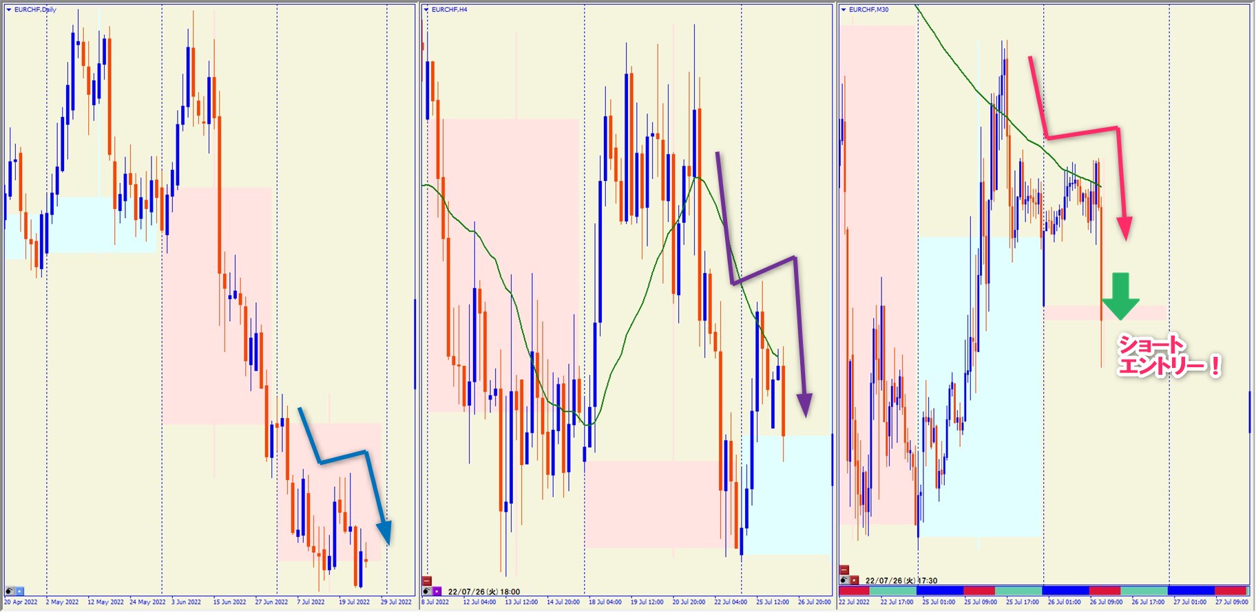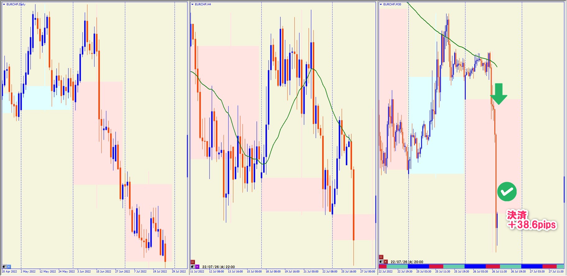 2022.7.26 17:30 EURCHF ショート +38.6pips