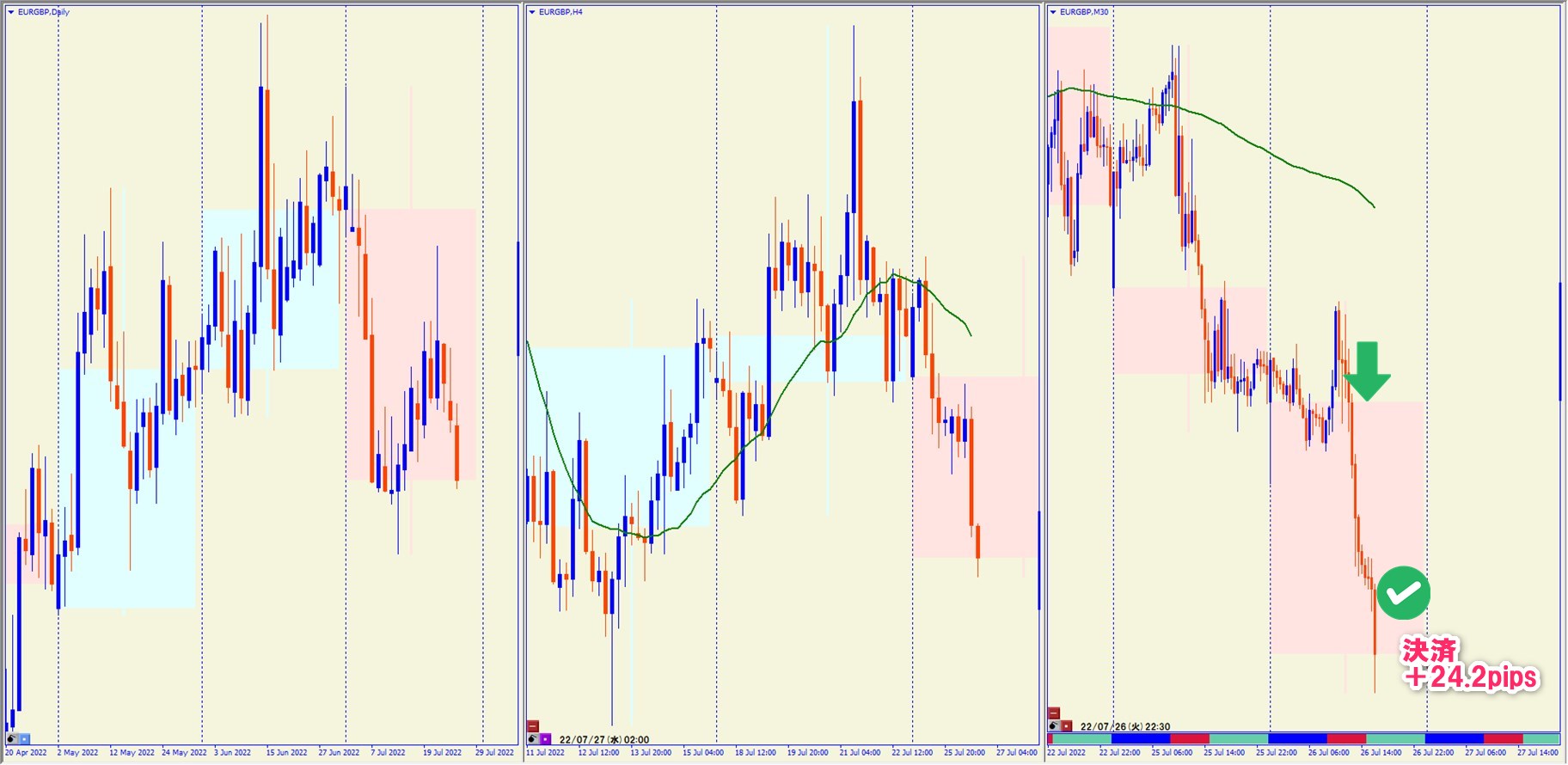 2022.7.26 18:30 EURGBP ショート +24.2pips