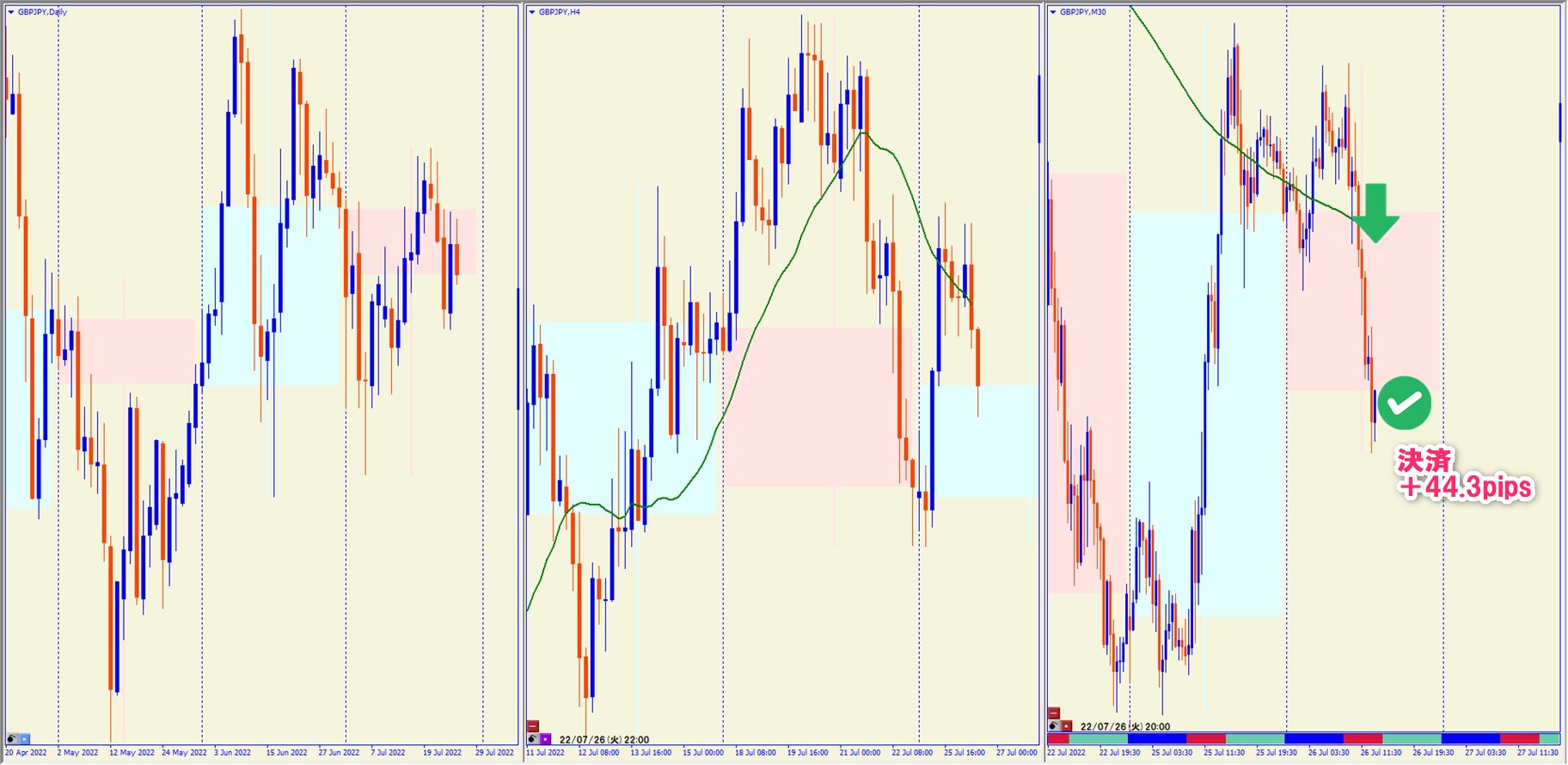 2022.7.26 17:30 GBPJPY ショート +44.3pips