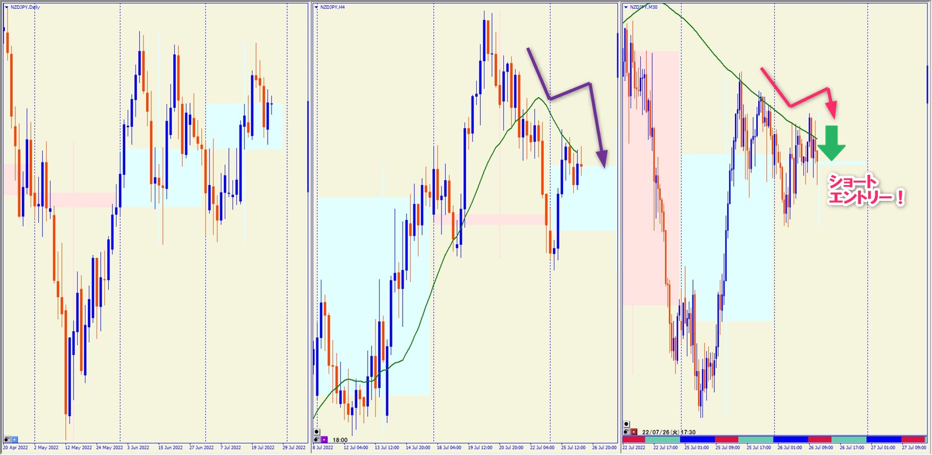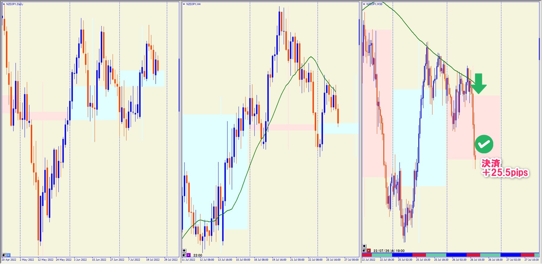 2022.7.26 17:30 NZDJPY ショート +25.5pips
