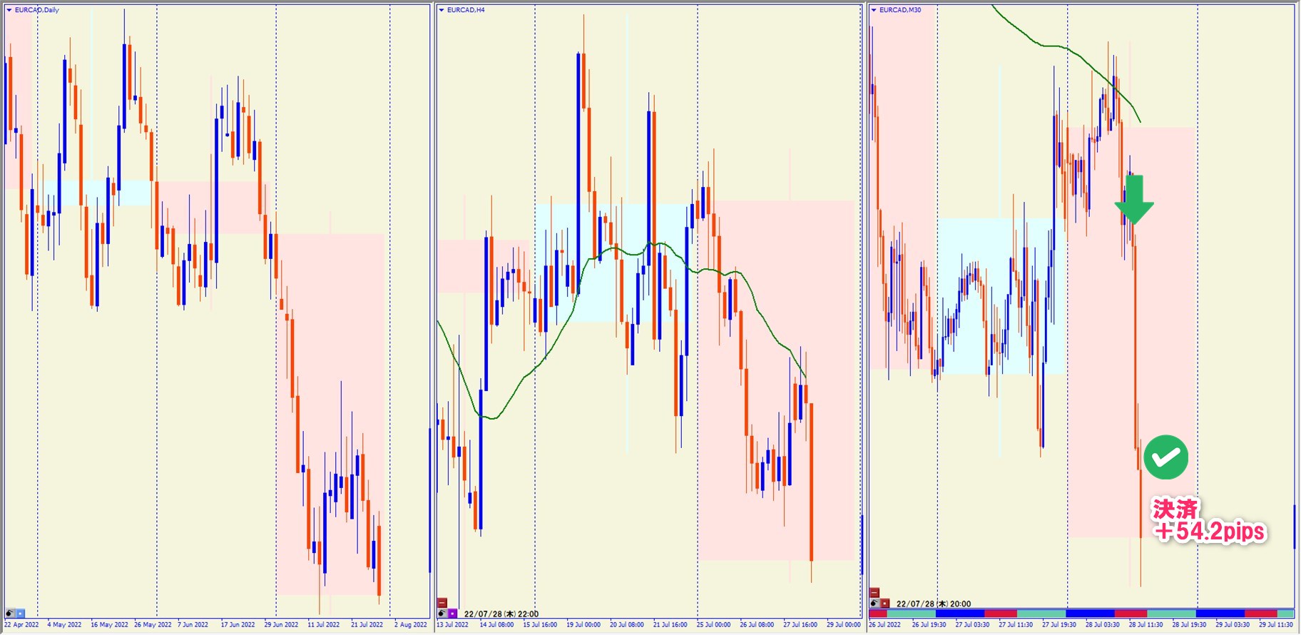 2022.7.28 16:30 EURCAD ショート +54.2pips