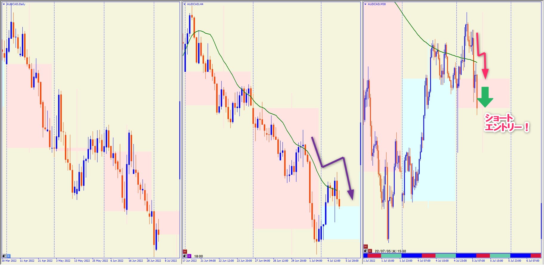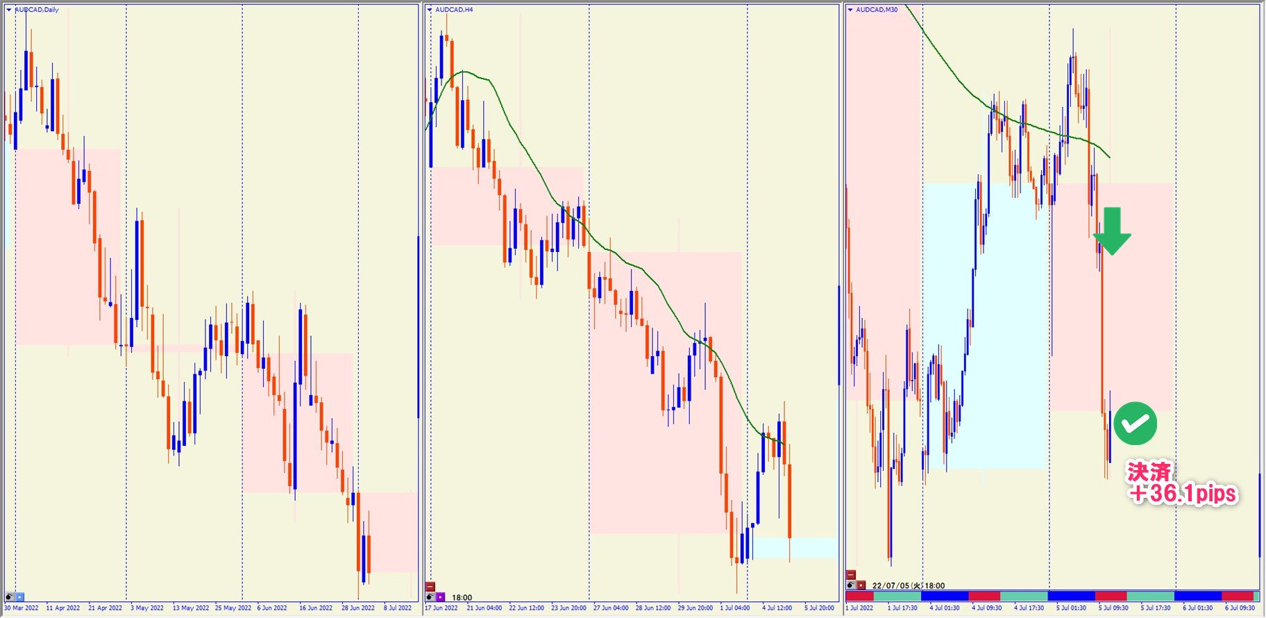 2022.7.5 15:30 AUDCAD ショート +36.1pips