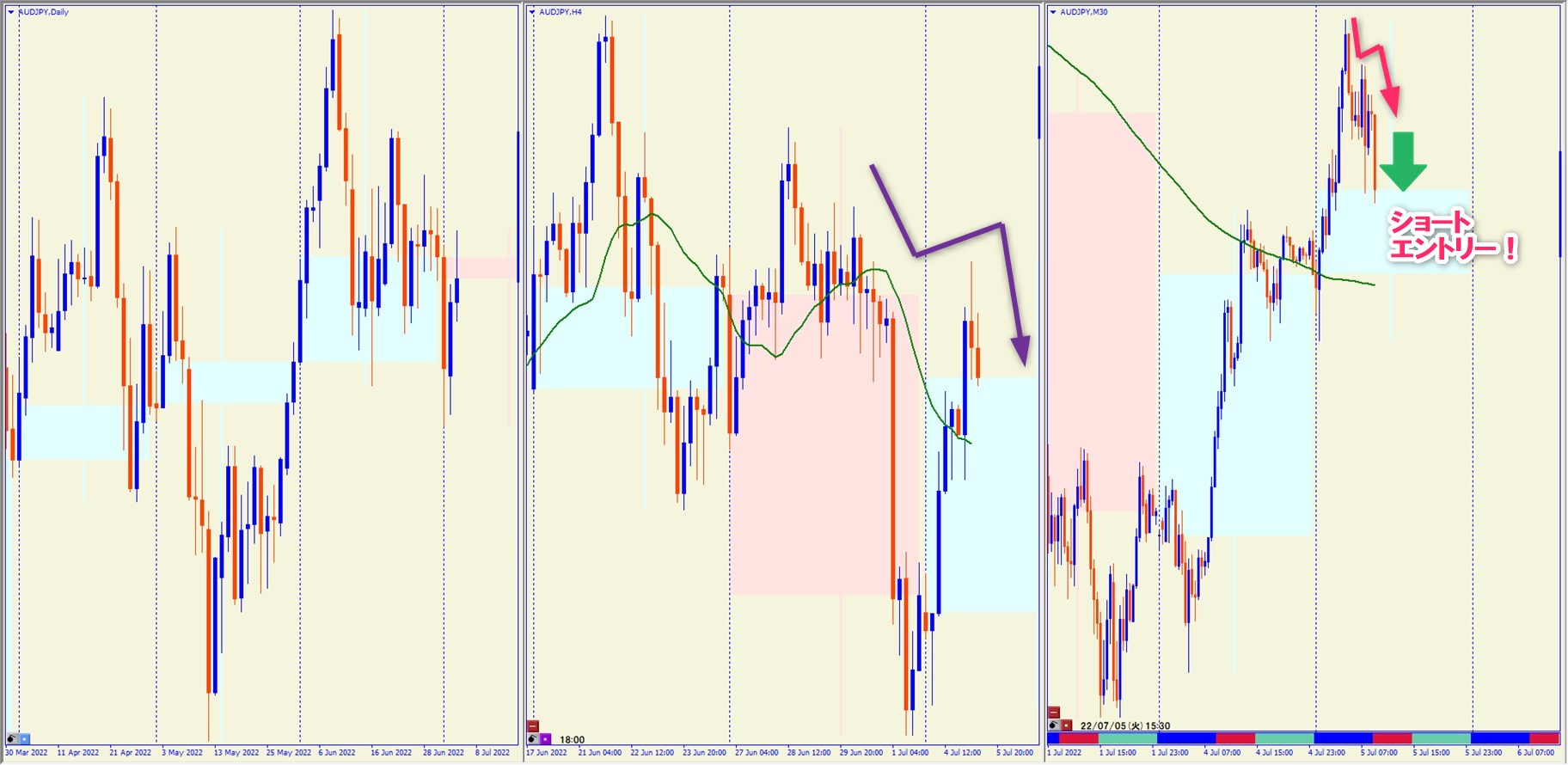 2022.7.5 15:30 AUDJPY ショート +59.4pips