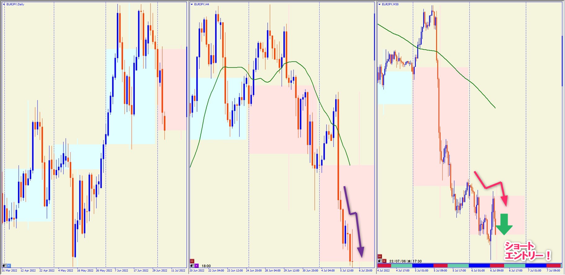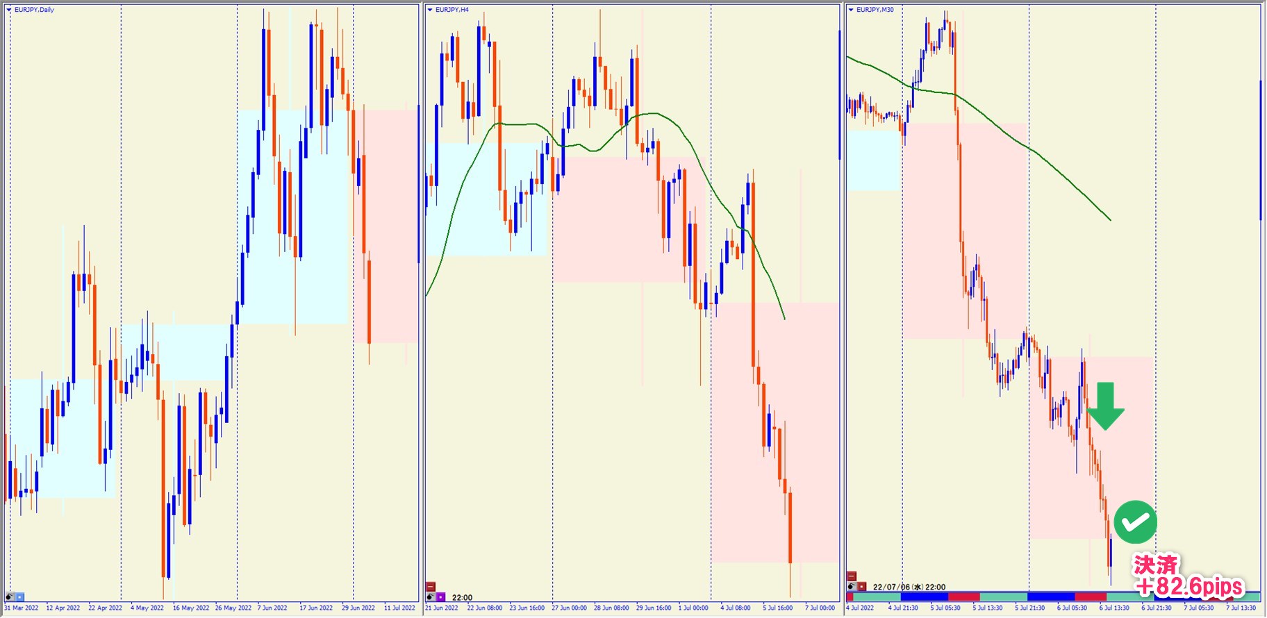 2022.7.6 17:30 EURJPY ショート +82.6pips