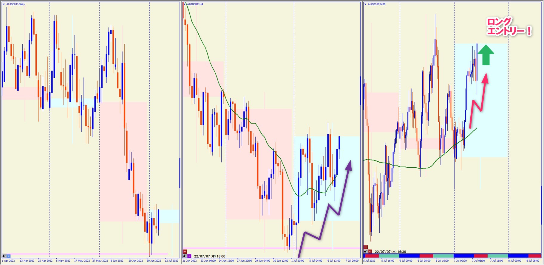 2022.7.7 16:30 AUDCHF ロング +45.7pips