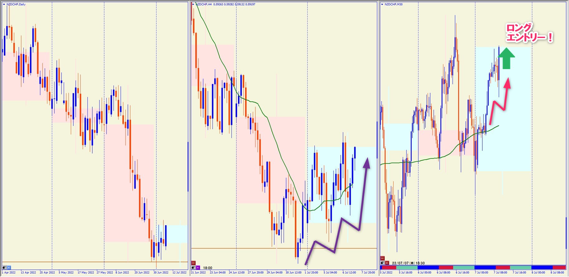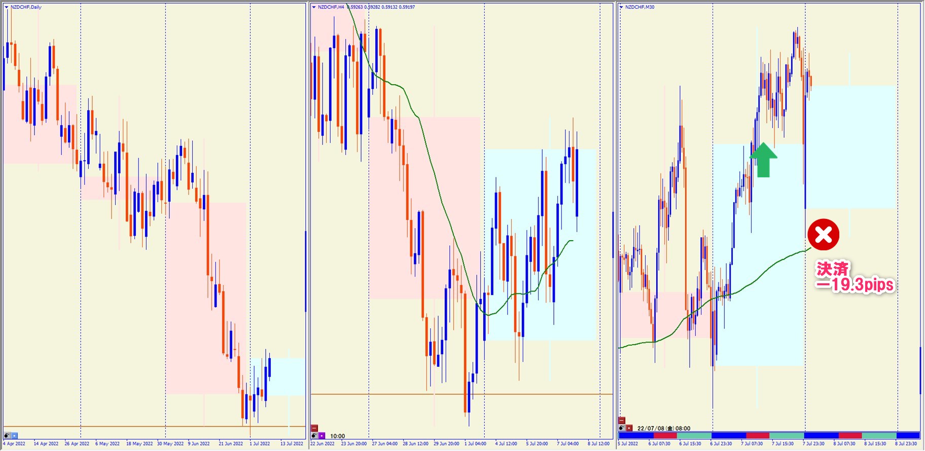 2022.7.7 16:30 NZDCHF ロング -19.3pips