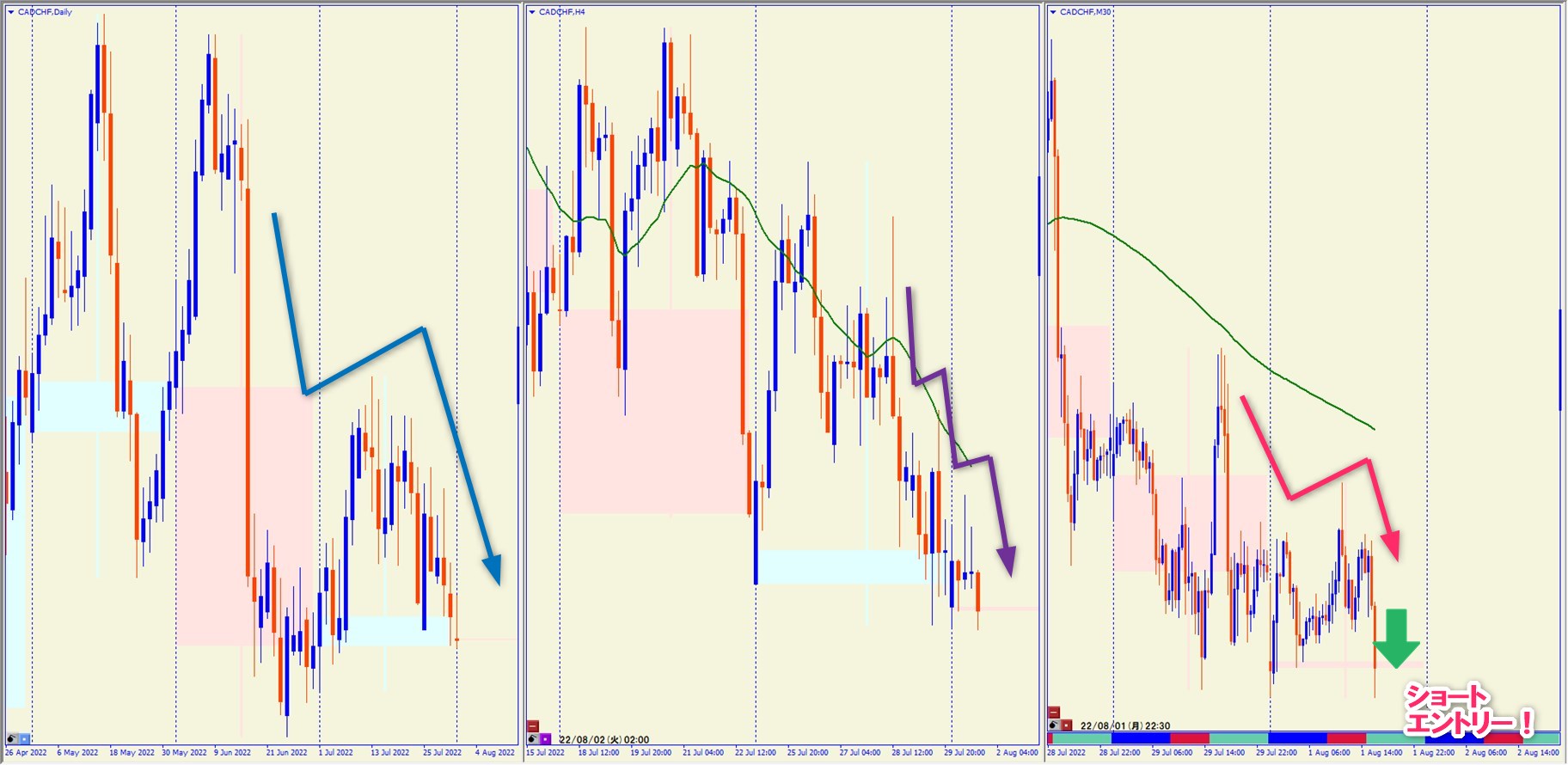 2022.8.1 22:30 CADCHF ショート +21.6pips
