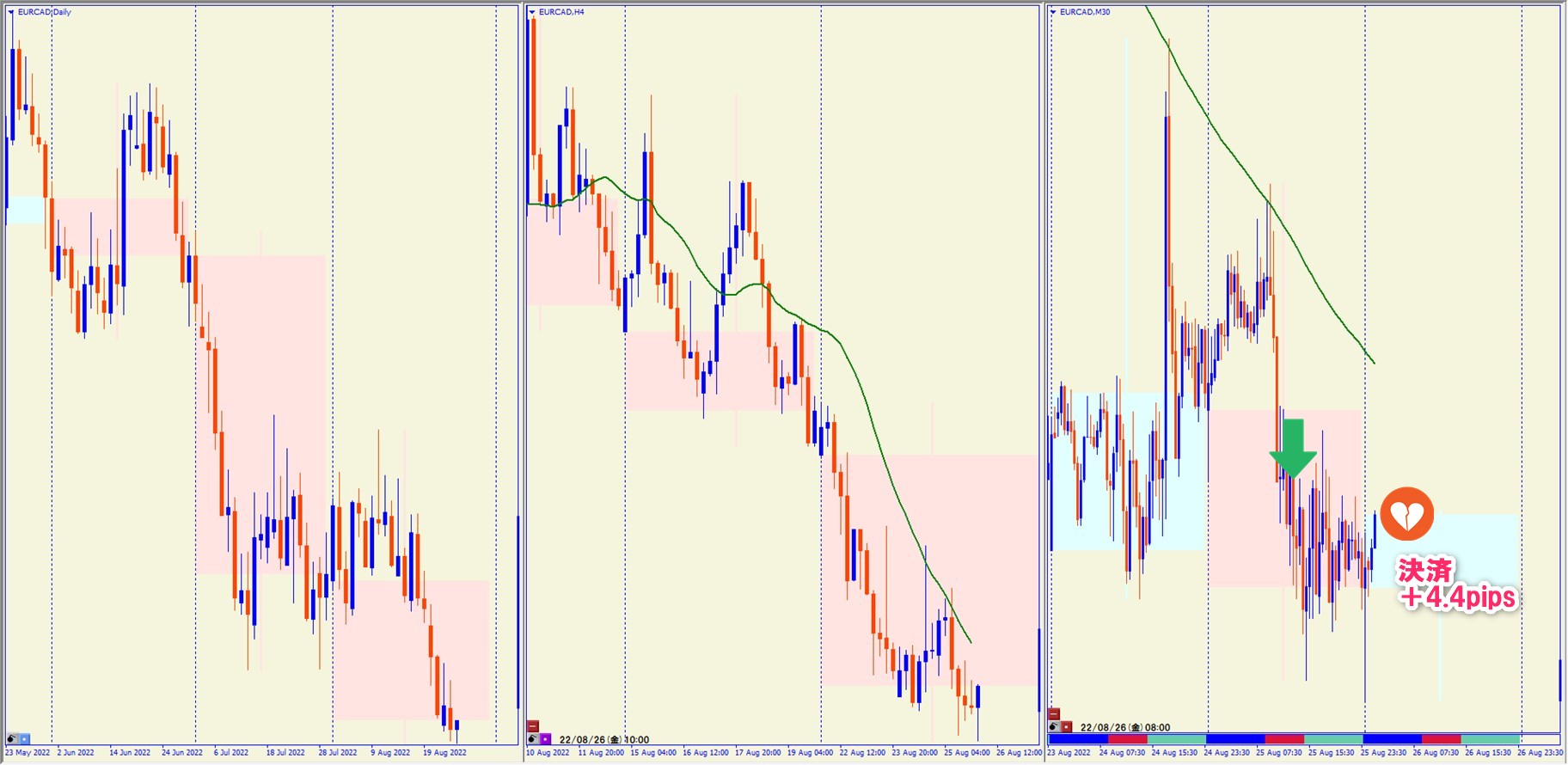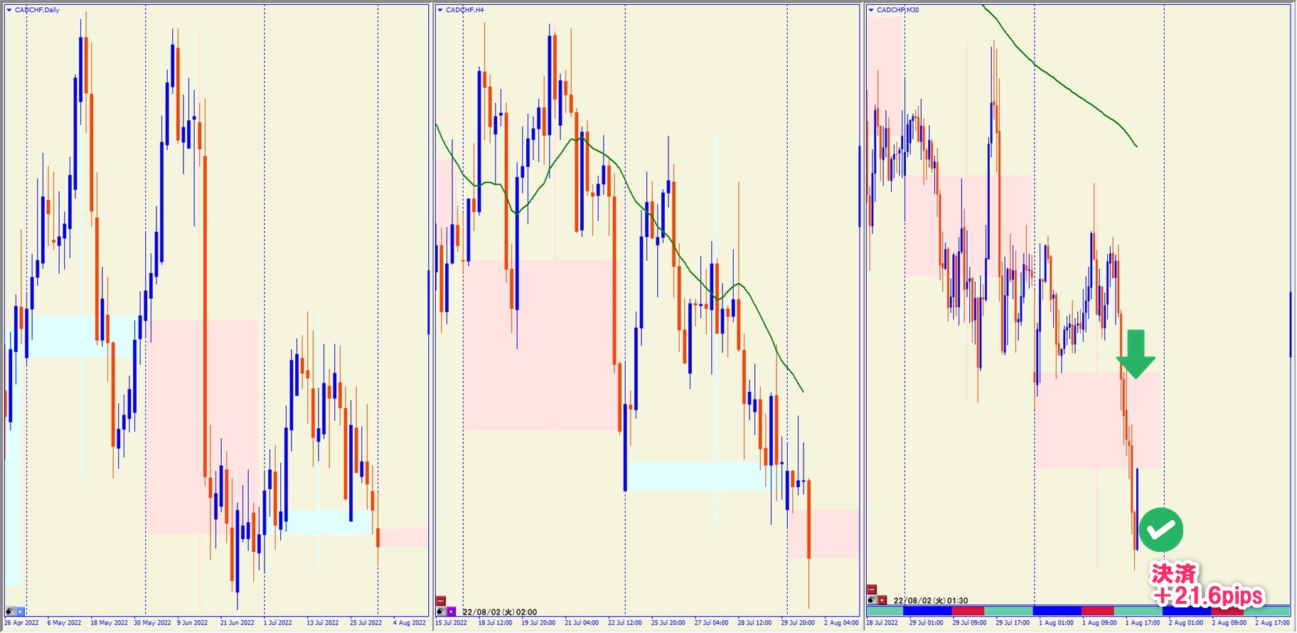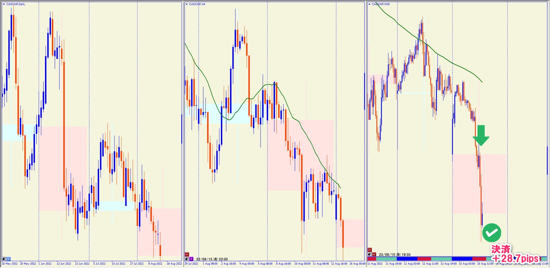 2022.8.15 16:30 CADCHF ショート +28.7pips