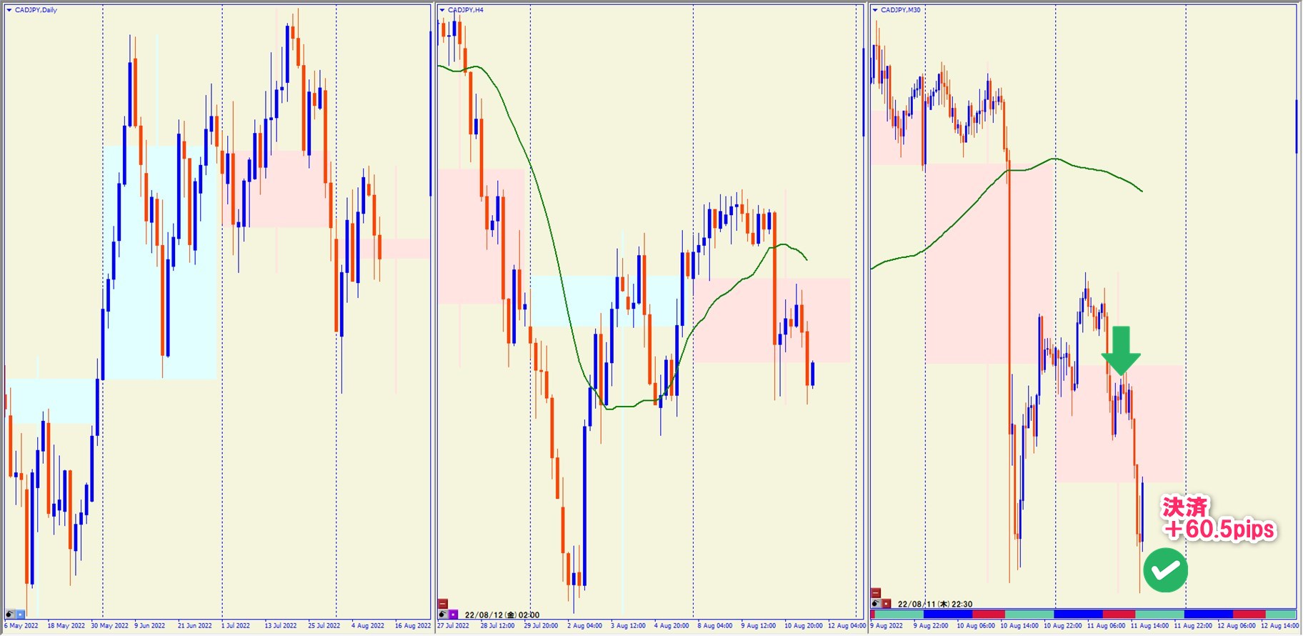 2022.8.11 16:00 CADJPY ショート +60.5pips