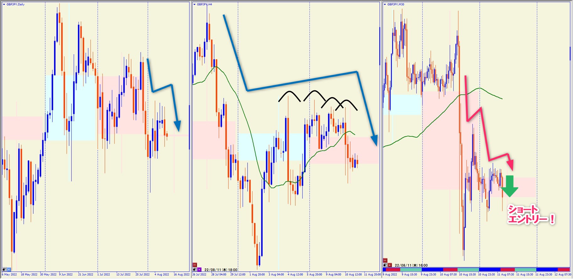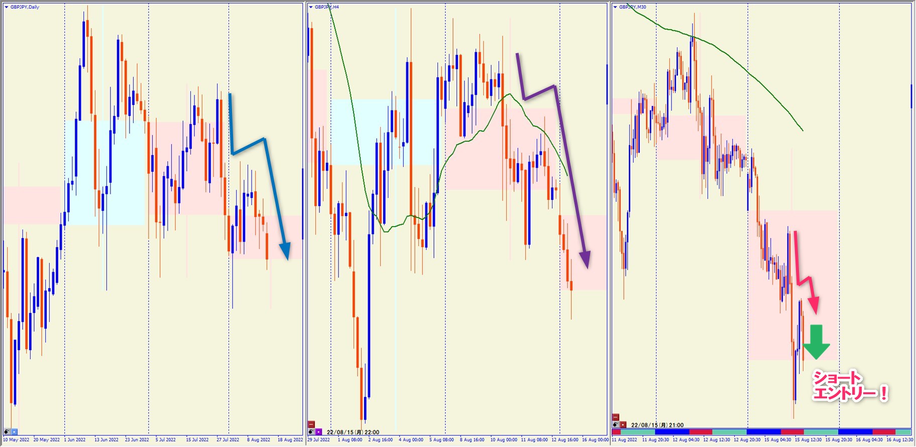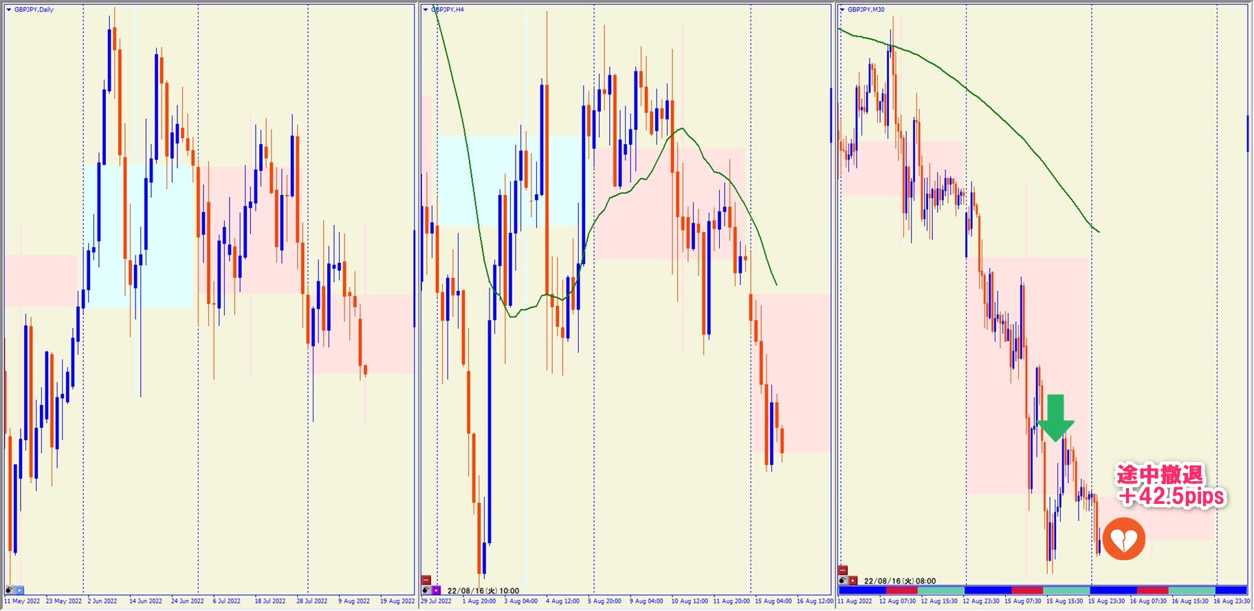 2022.8.15 21:00 GBPJPY ショート +42.5pips
