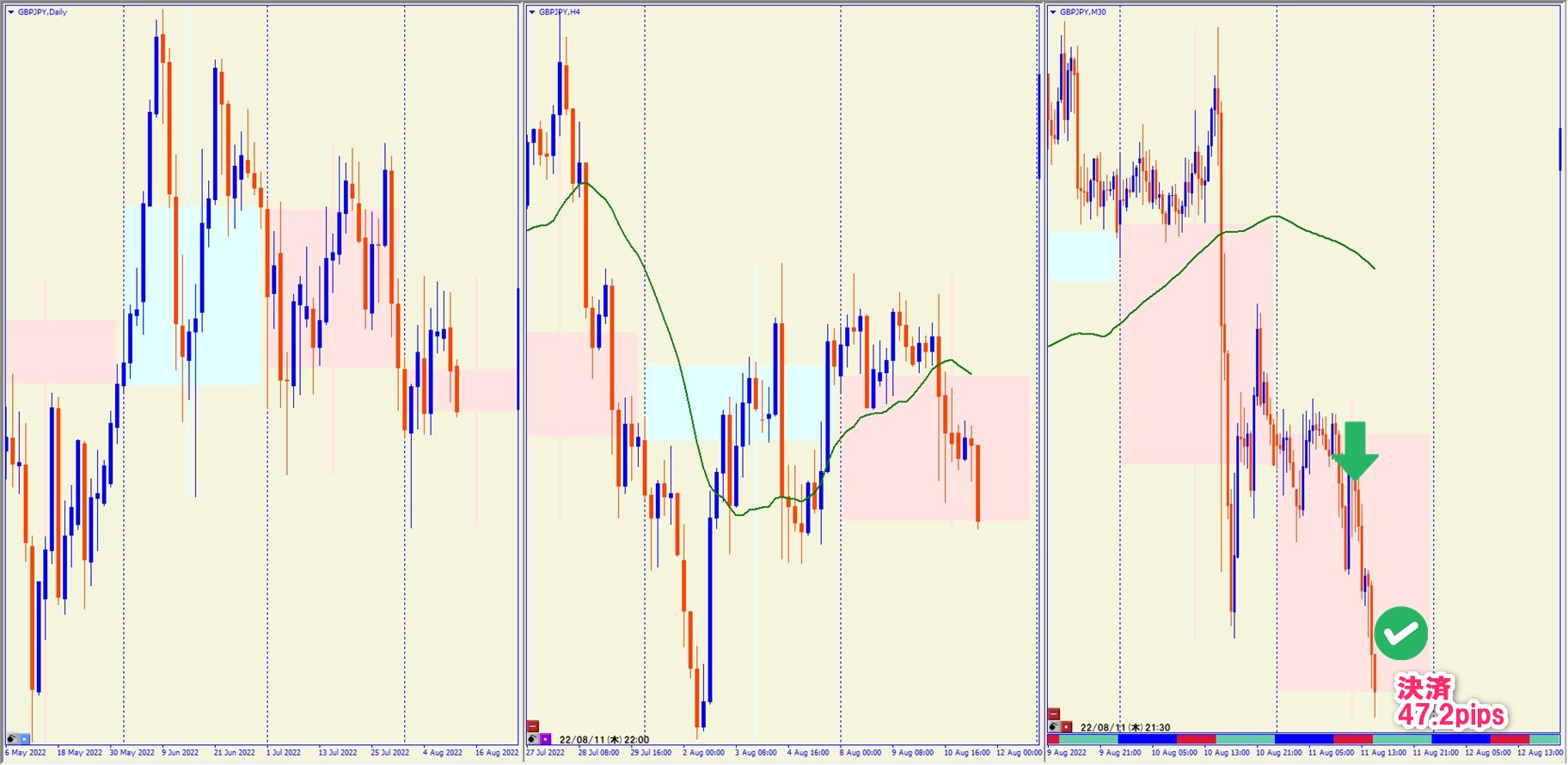 2022.8.11 16:00 GBPJPY ショート +47.2pips