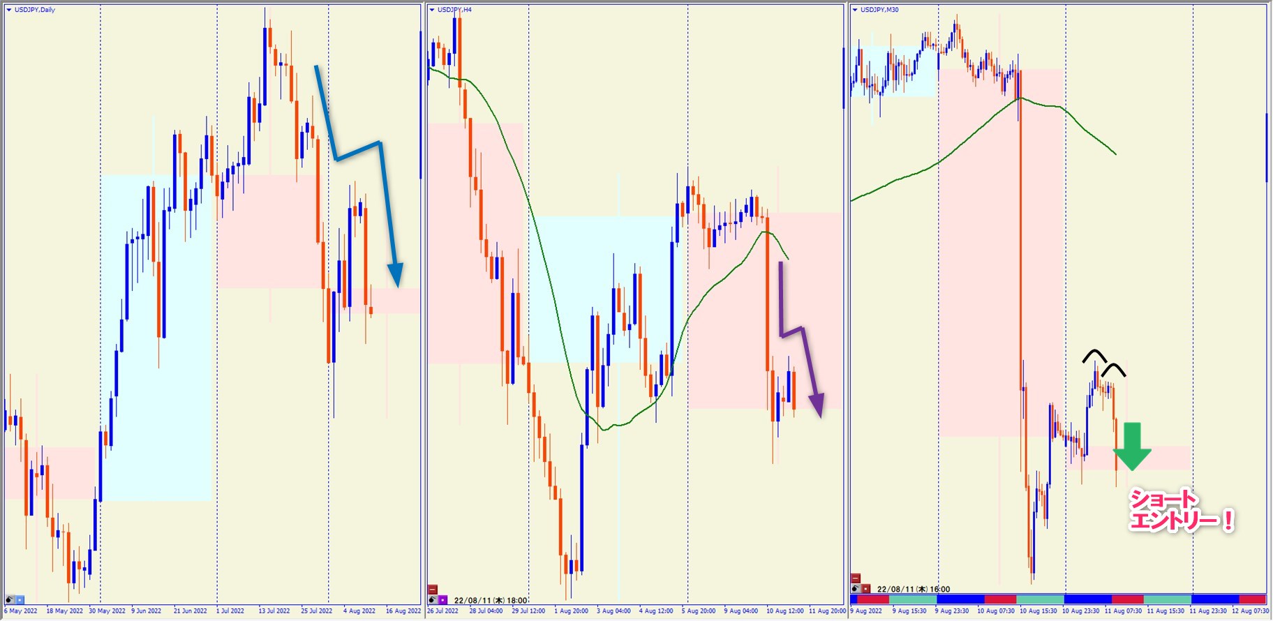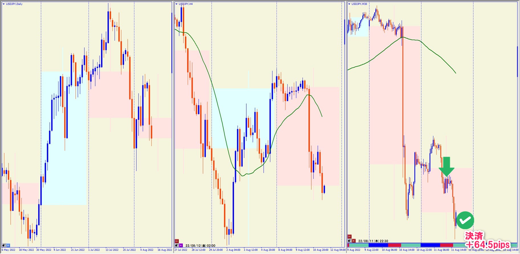 2022.8.11 16:00 USDJPY ショート +64.5pips