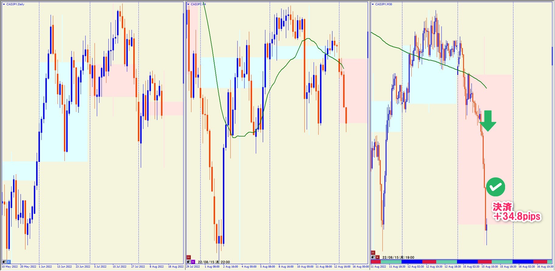 2022.8.15 16:30 CADJPY ショート +34.8pips