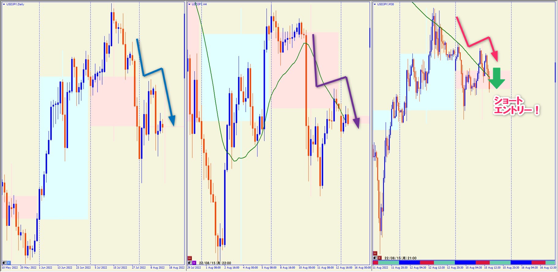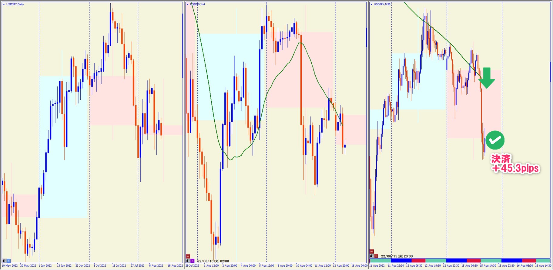 2022.8.15 21:00 USDJPY ショート +45.3pips