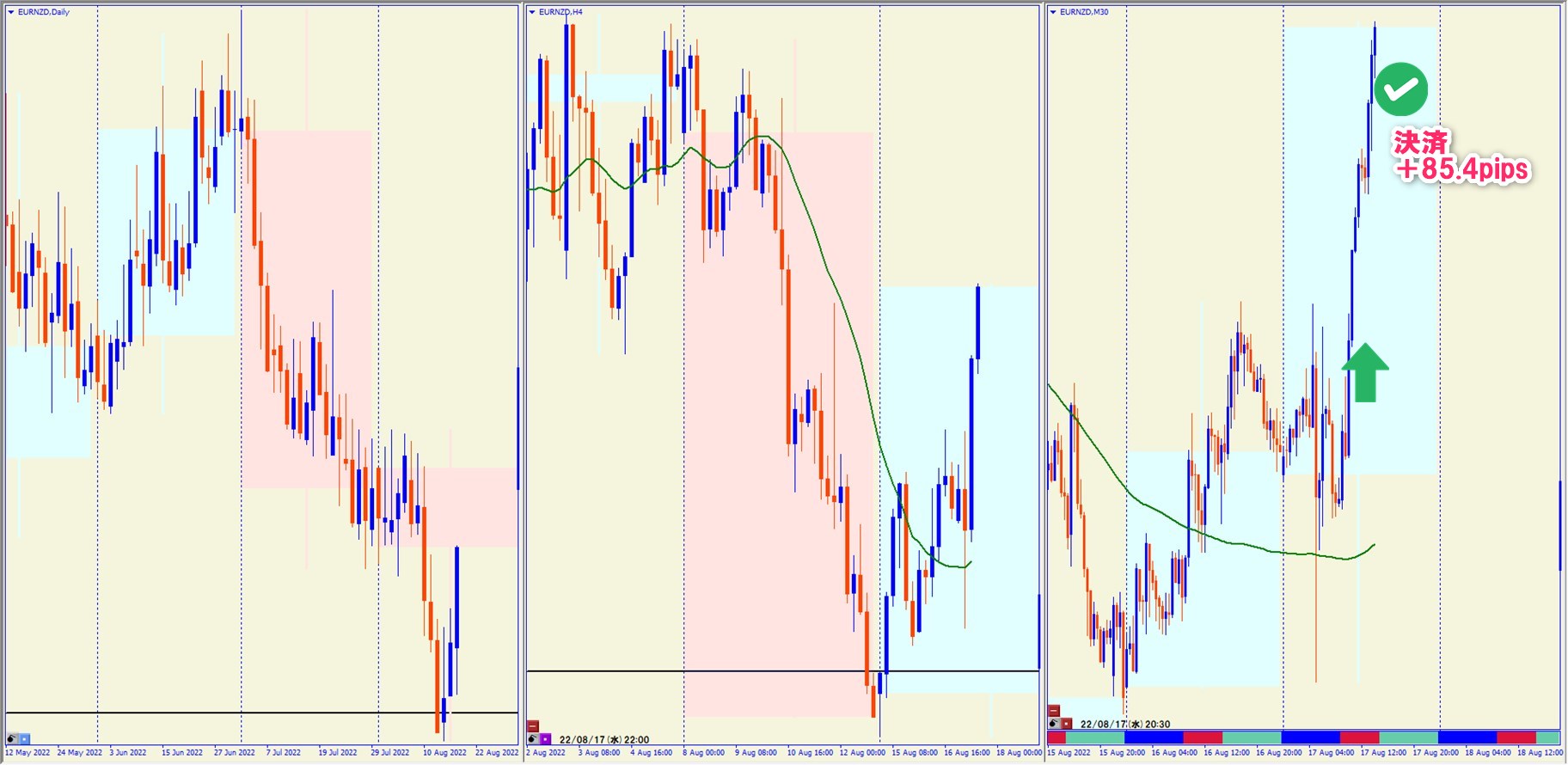 2022.8.17 16:30 EURNZD ロング +85.4pips