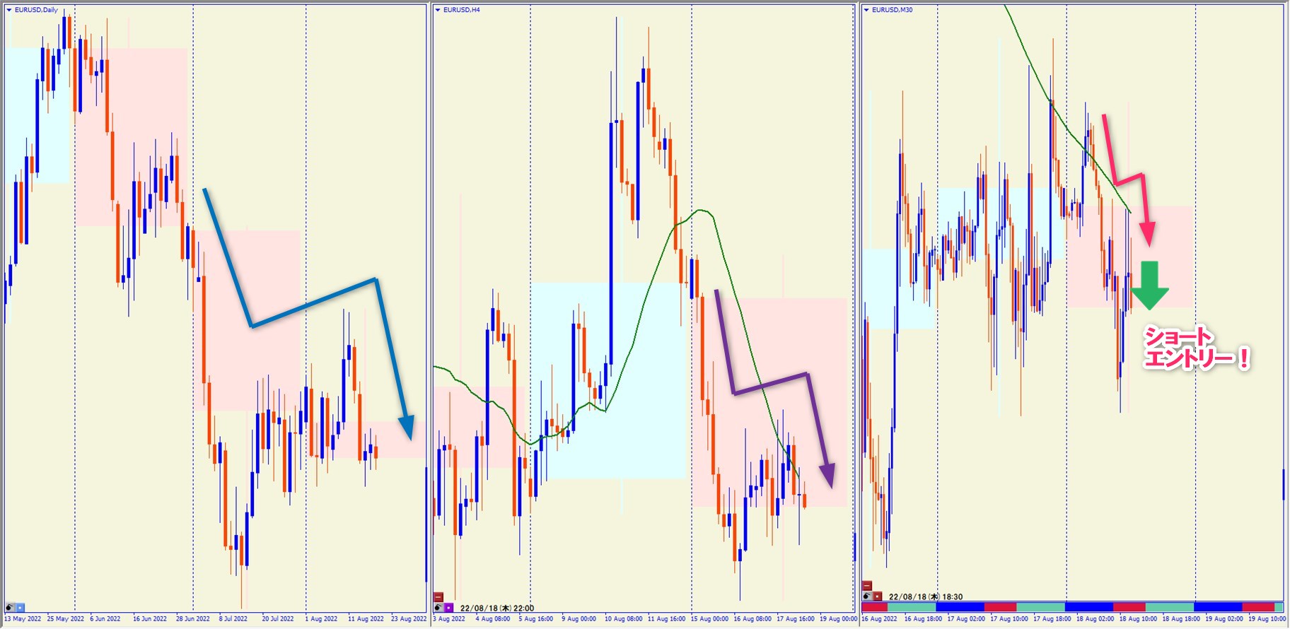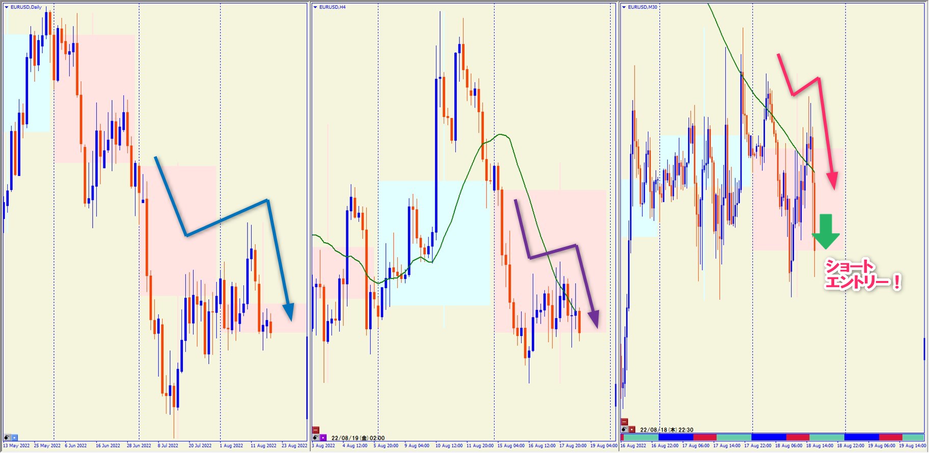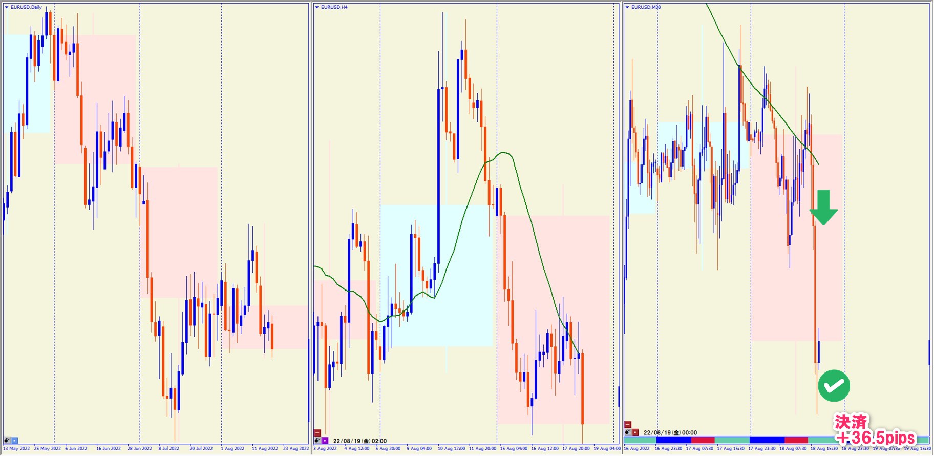 2022.8.18 22:30 EURUSD ショート +36.5pips
