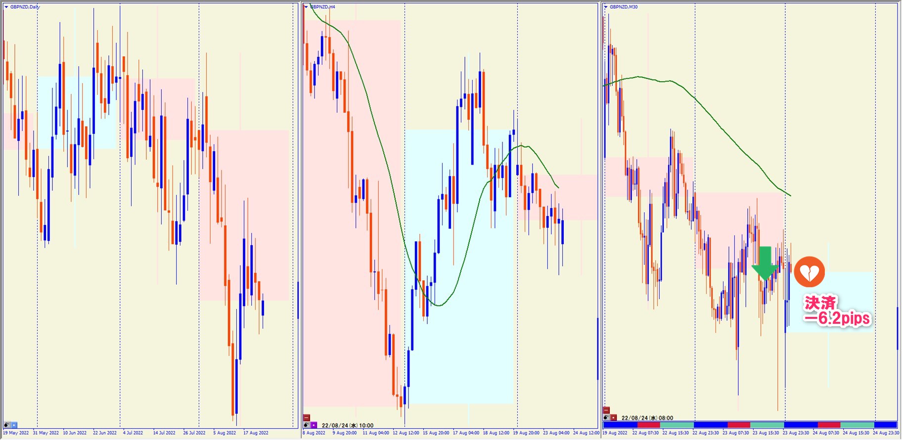 2022.8.23 23:30 GBPNZD ショート -6.2pips