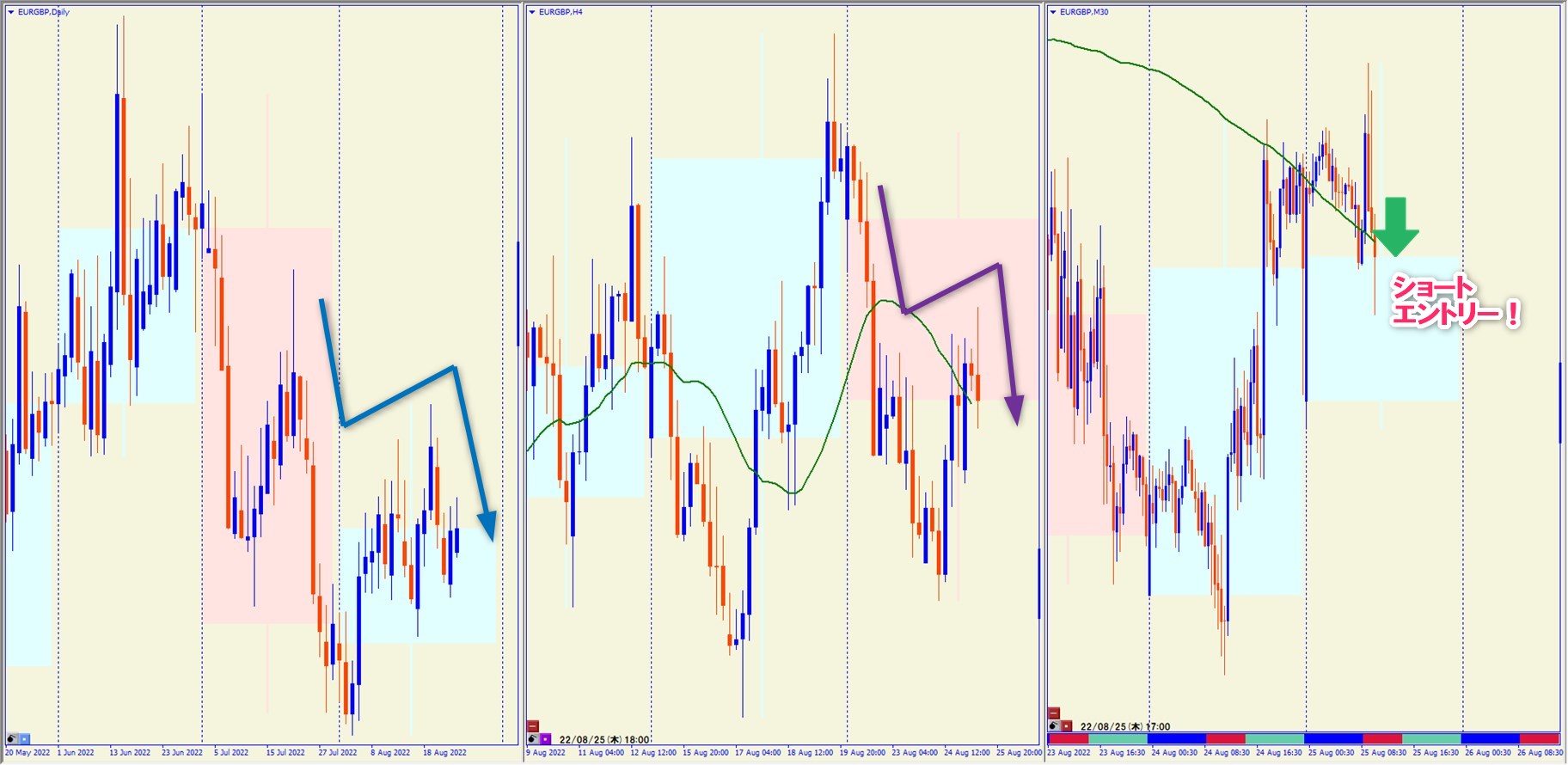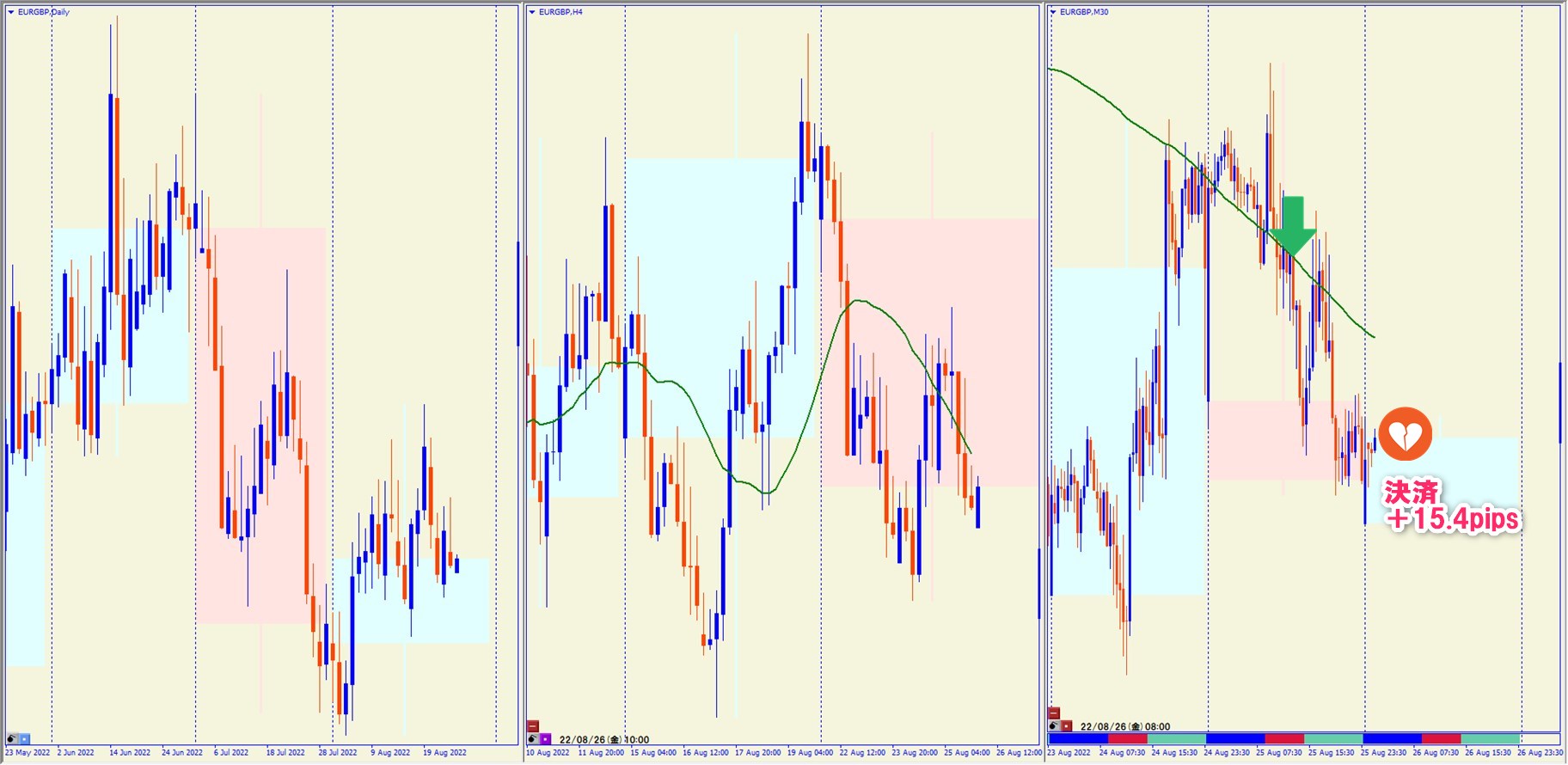 2022.8.25 17:00 EURGBP ショート +15.4pips