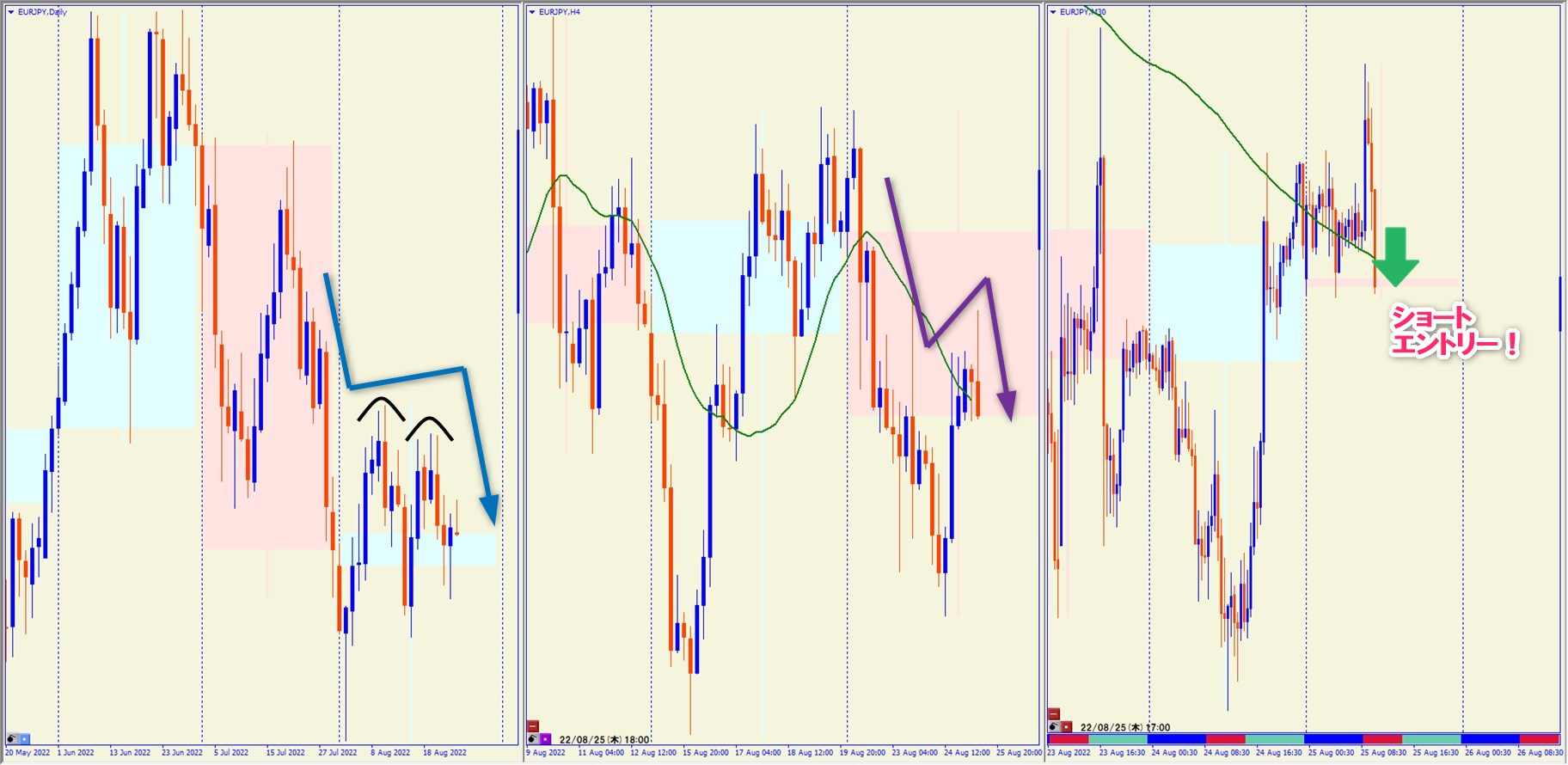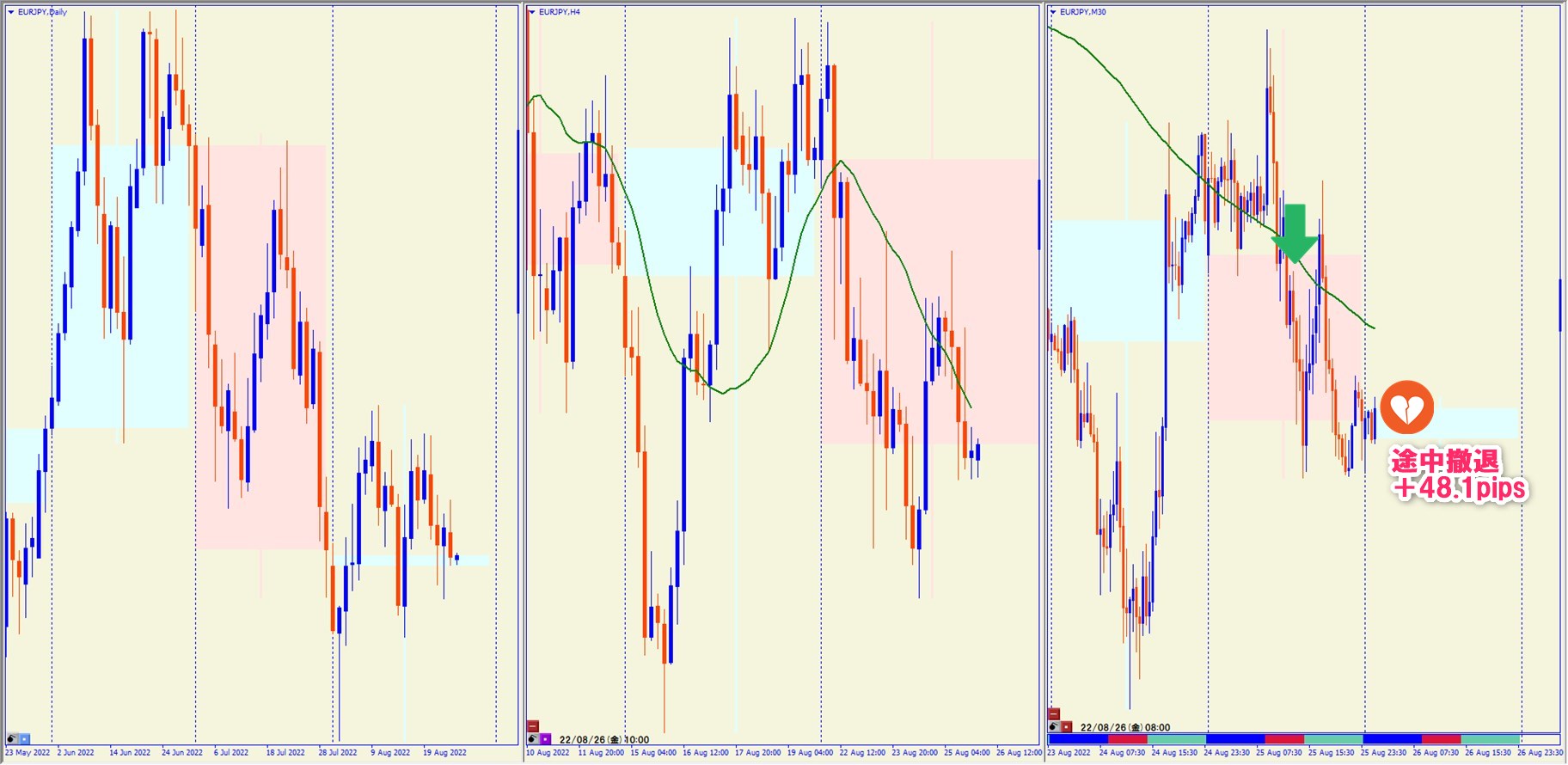 2022.8.25 17:00 EURJPY ショート +48.1pips