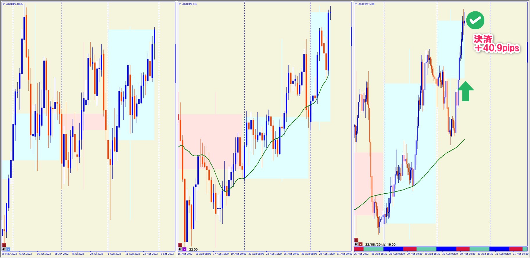 2022.8.30 16:00 AUDJPY ロング +40.9pips