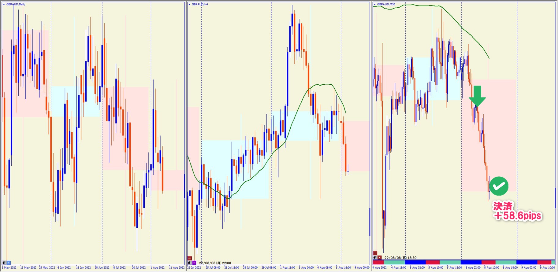 2022.8.8 11:00 GBPAUD ショート +58.6pips