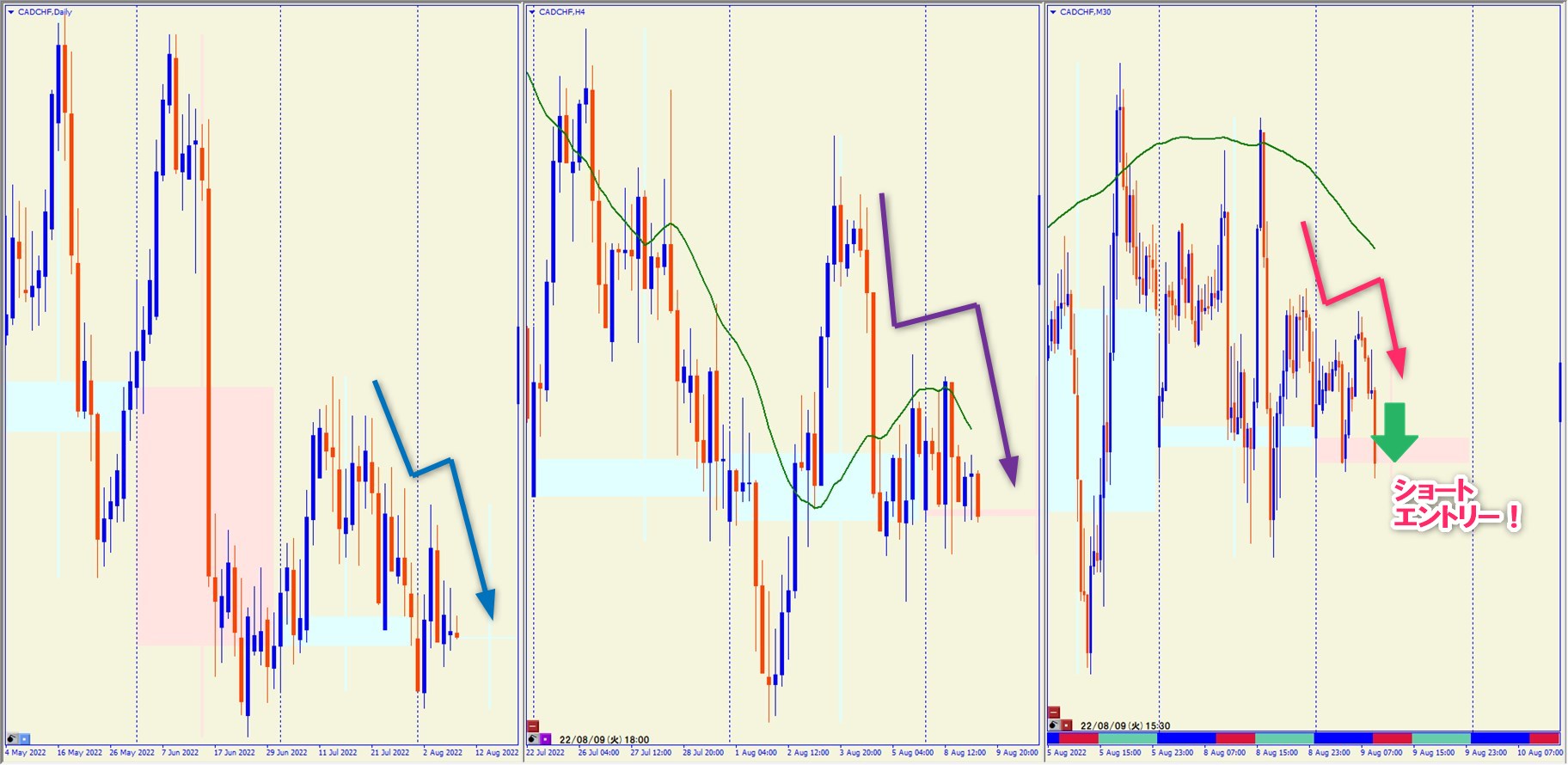 2022.8.9 15:30 CADCHF ショート +21.7pips