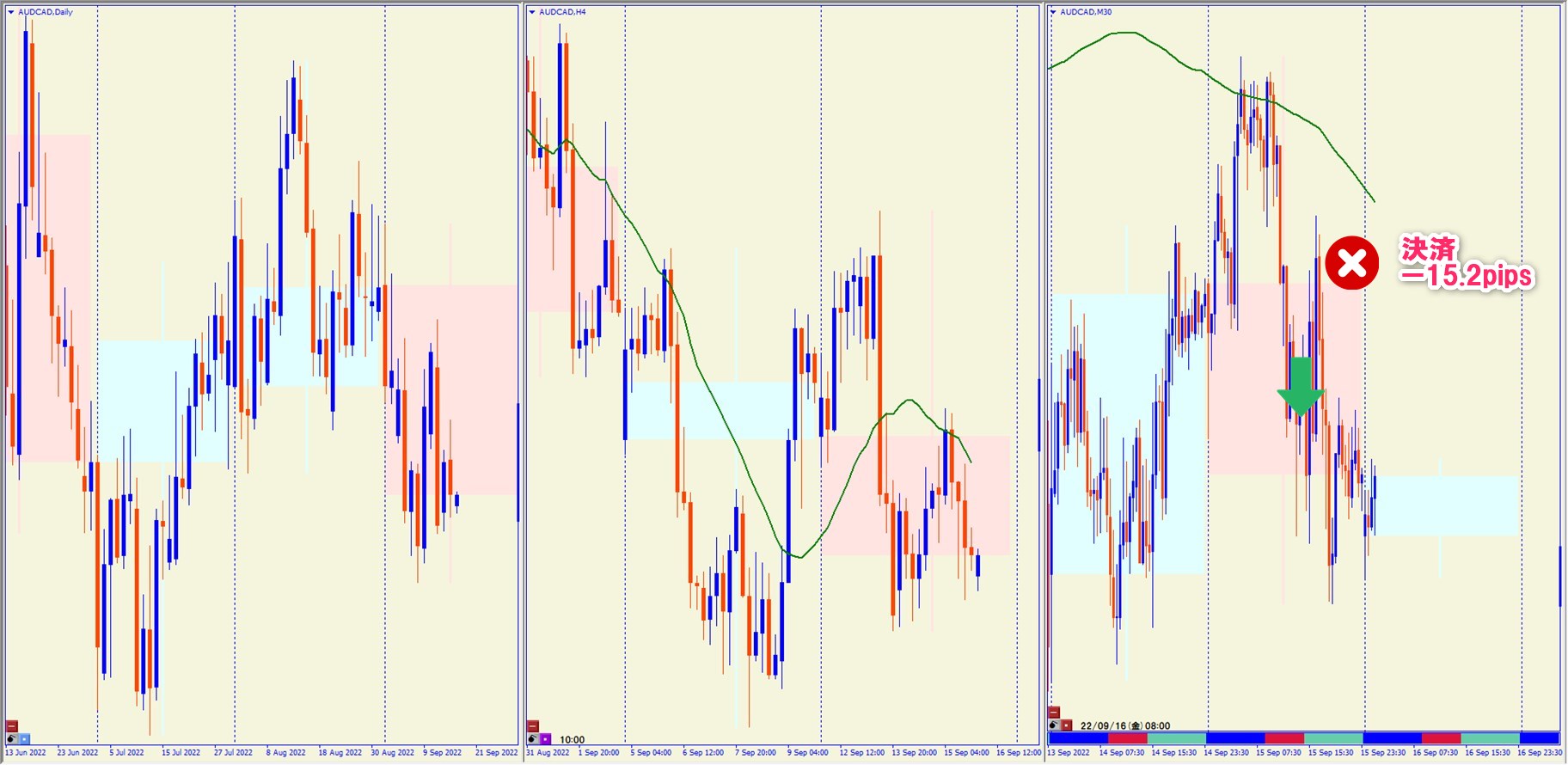 2022.9.15 18:30 AUDCAD ショート -15.2pips