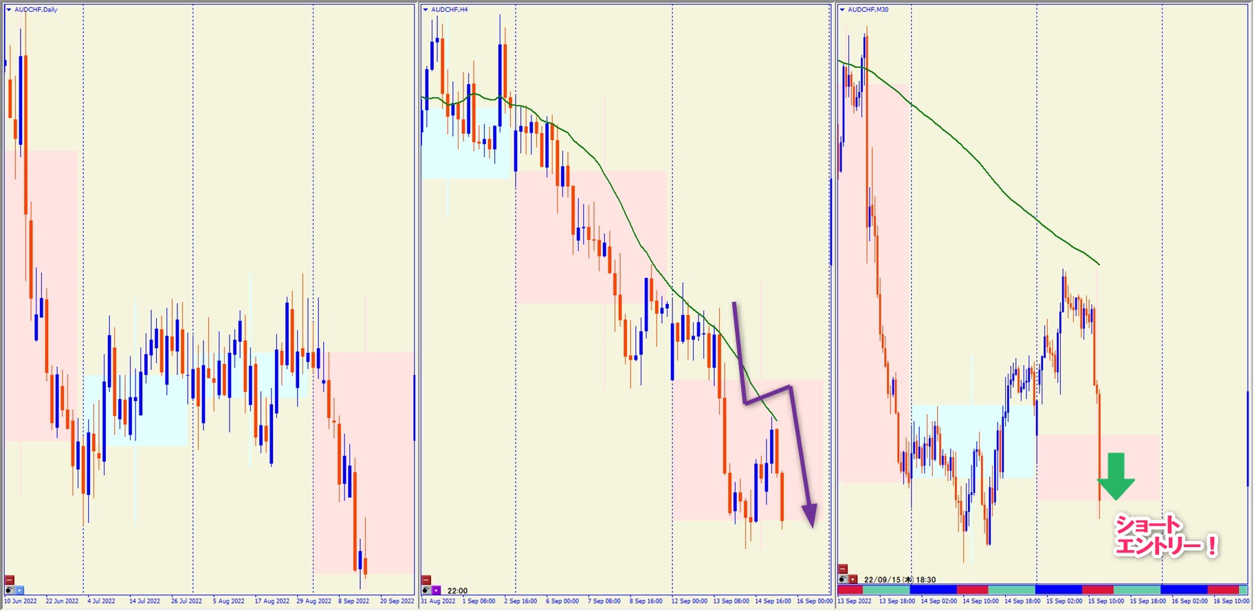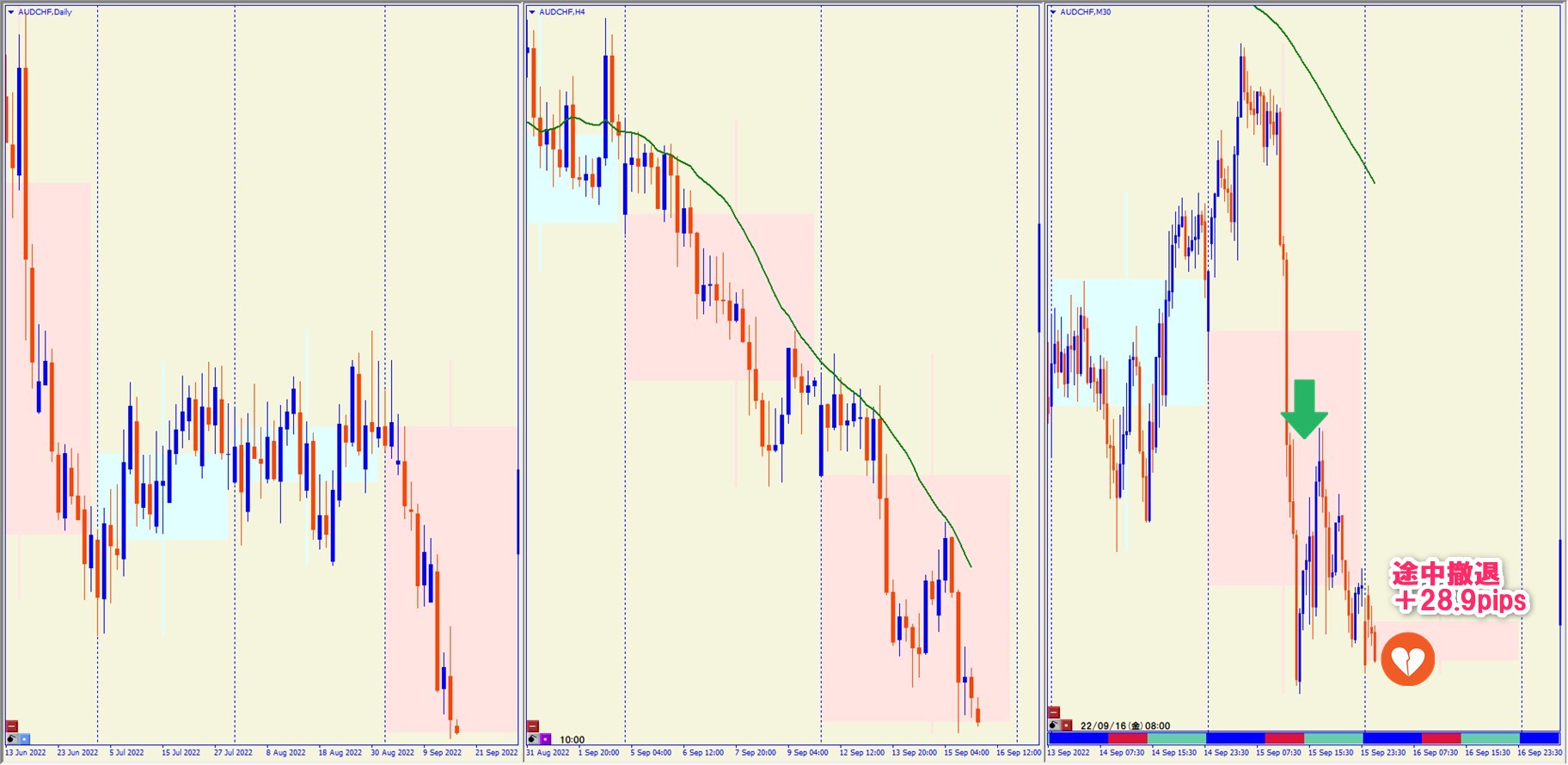 2022.9.15 18:30 AUDCHF ショート +28.9pips