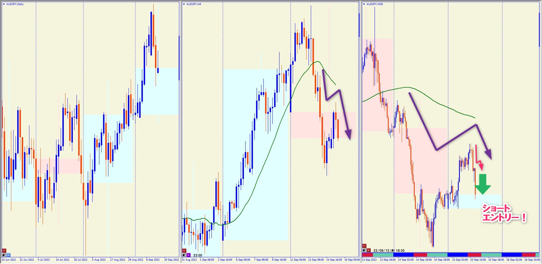 2022.9.15 18:30 AUDJPY ショート +64.2pips