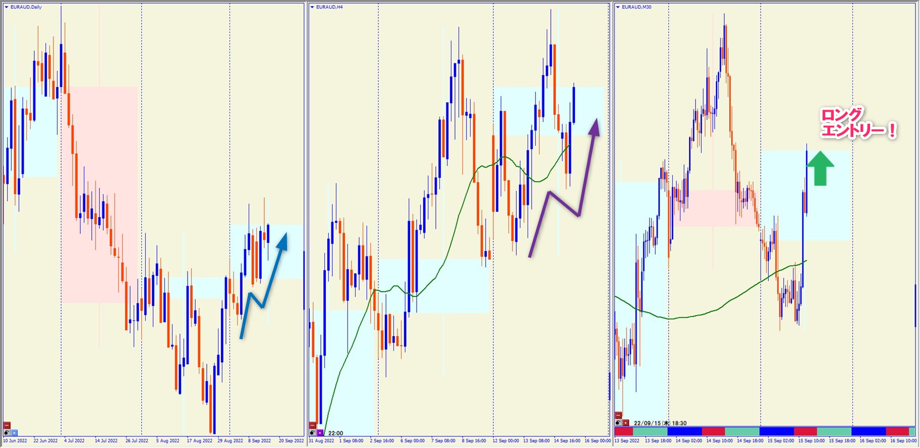 2022.9.15 18:30 EURAUD ロング +73.5pips