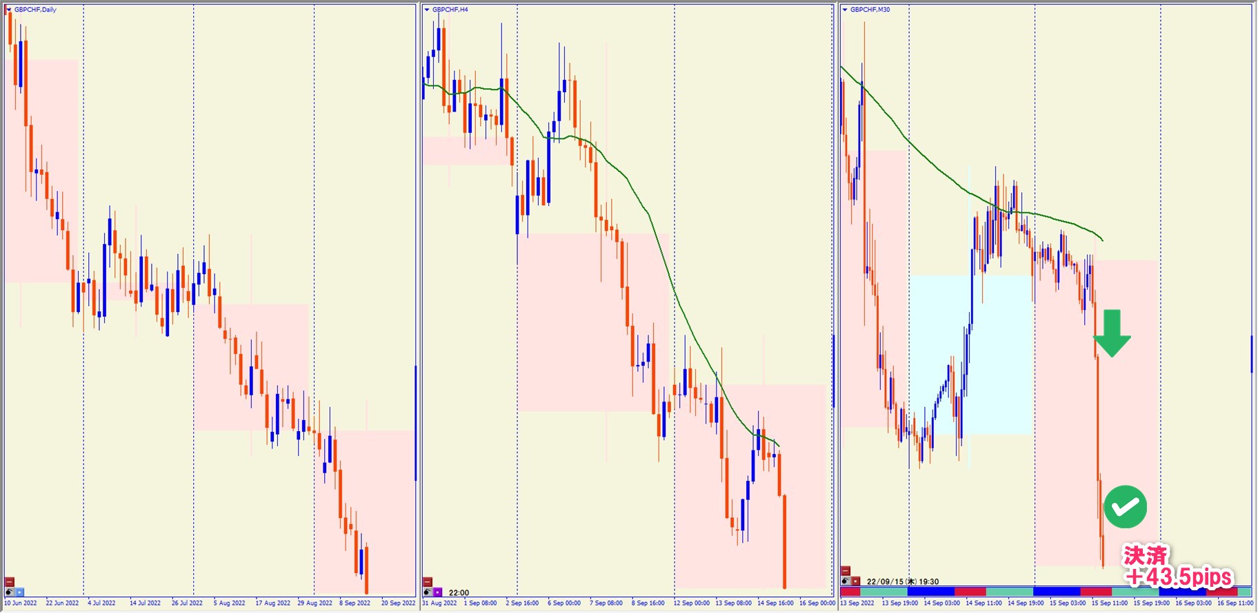 2022.9.15 18:00 GBPCHF ショート +43.5pips