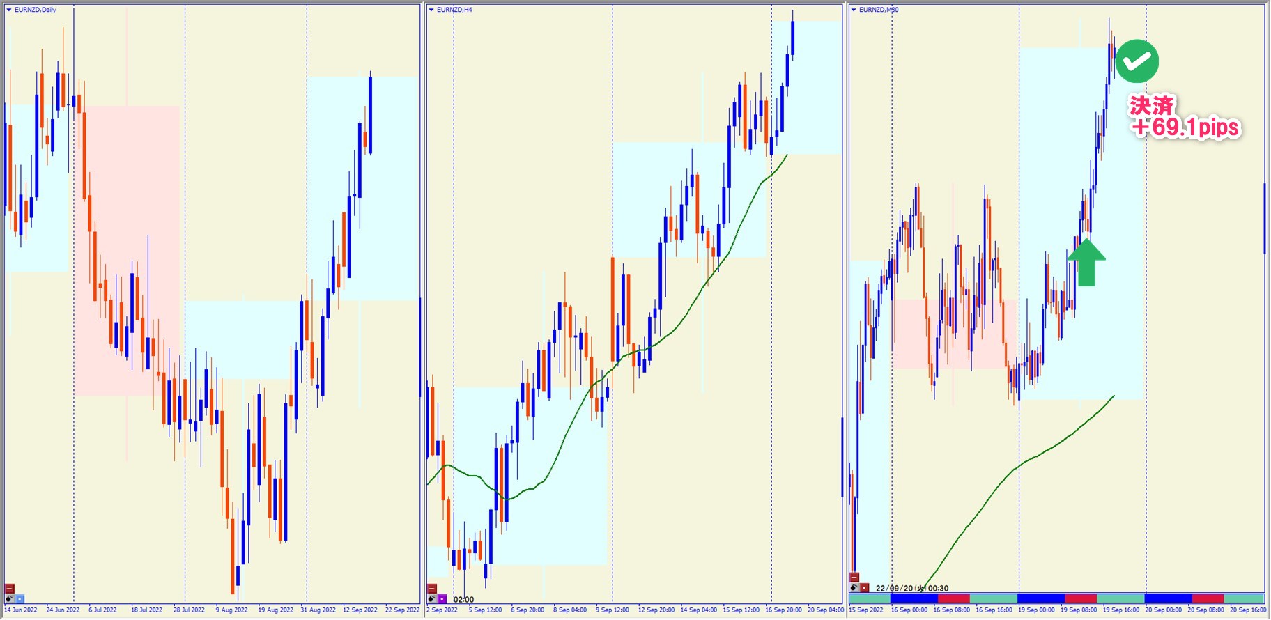 2022.9.19 17:00 EURNZD ロング +69.1pips