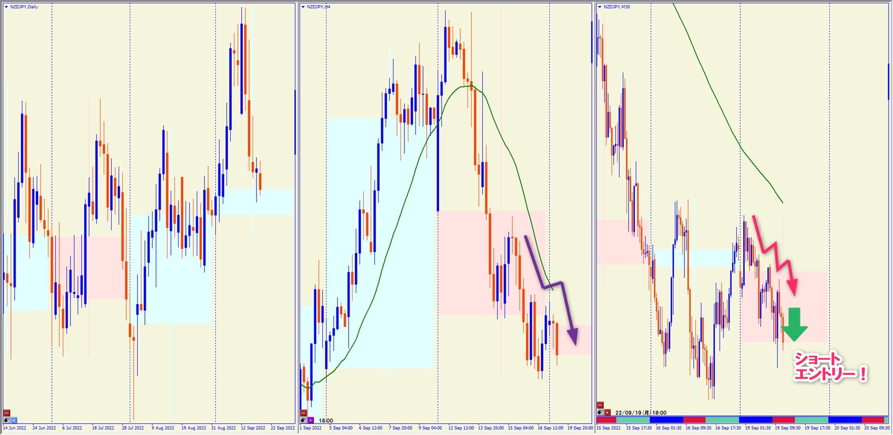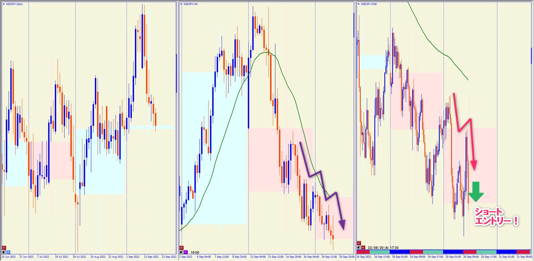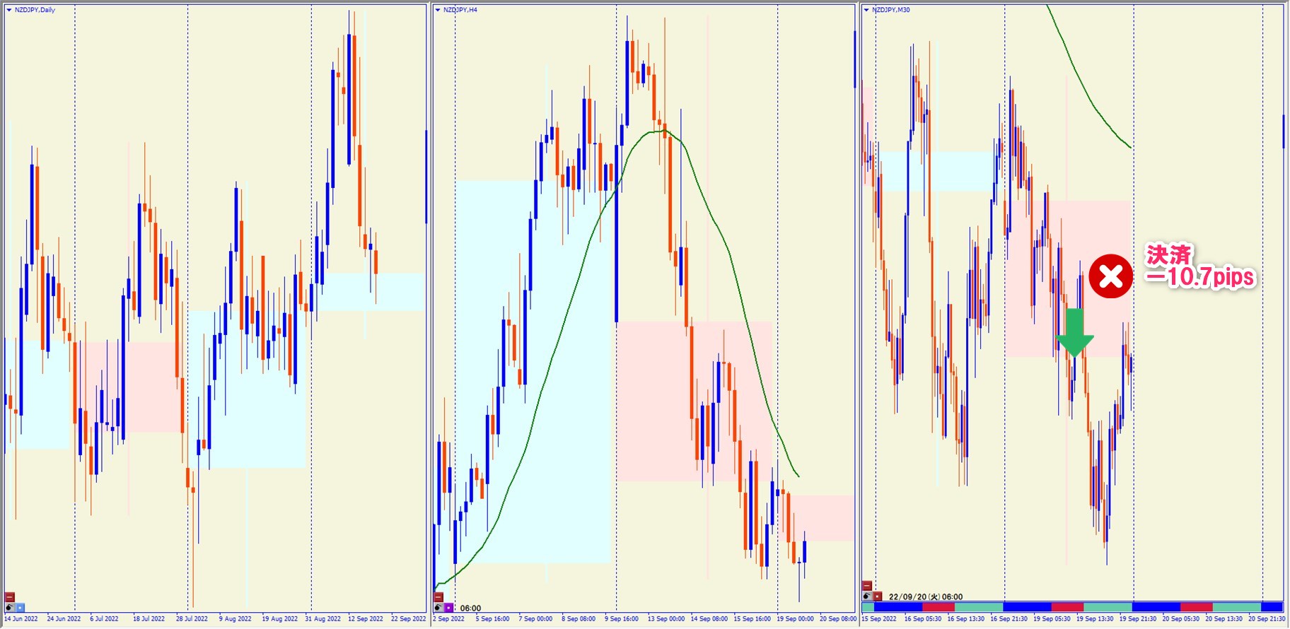2022.9.20 17:30 NZDJPY ショート +39.8pips