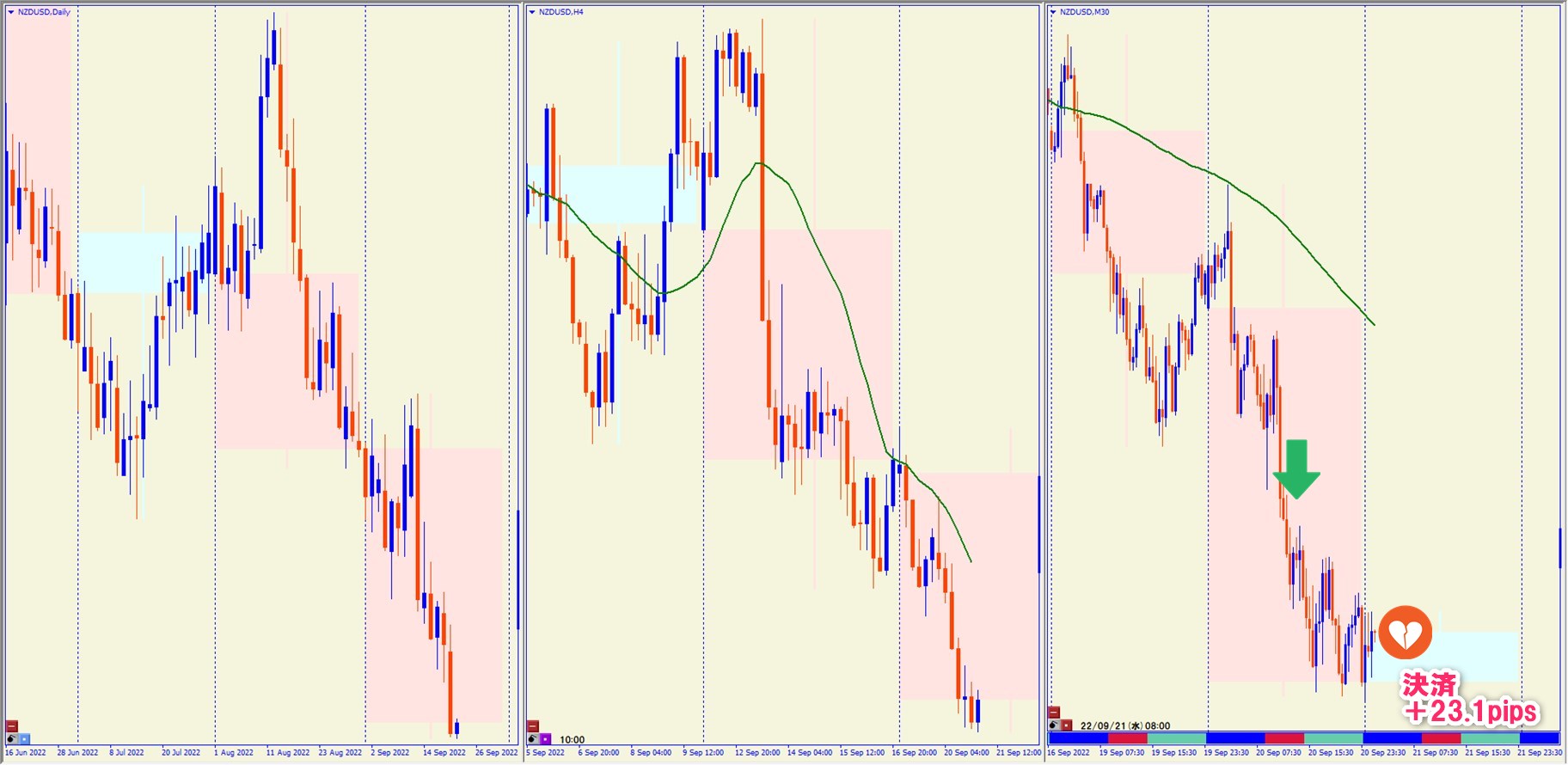2022.9.20 17:30 NZDUSD ショート +23.1pips