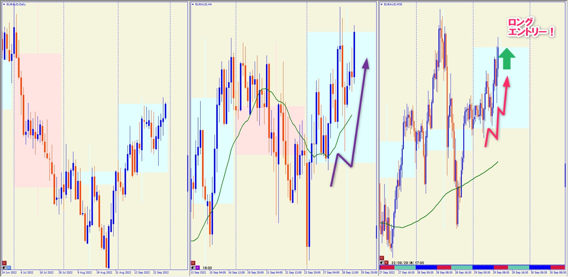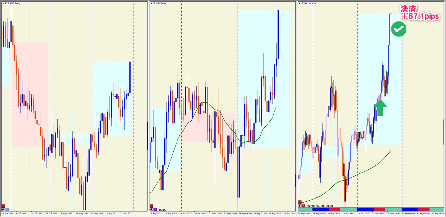 2022.9.29 17:00 EURAUD ロング +87.1pips