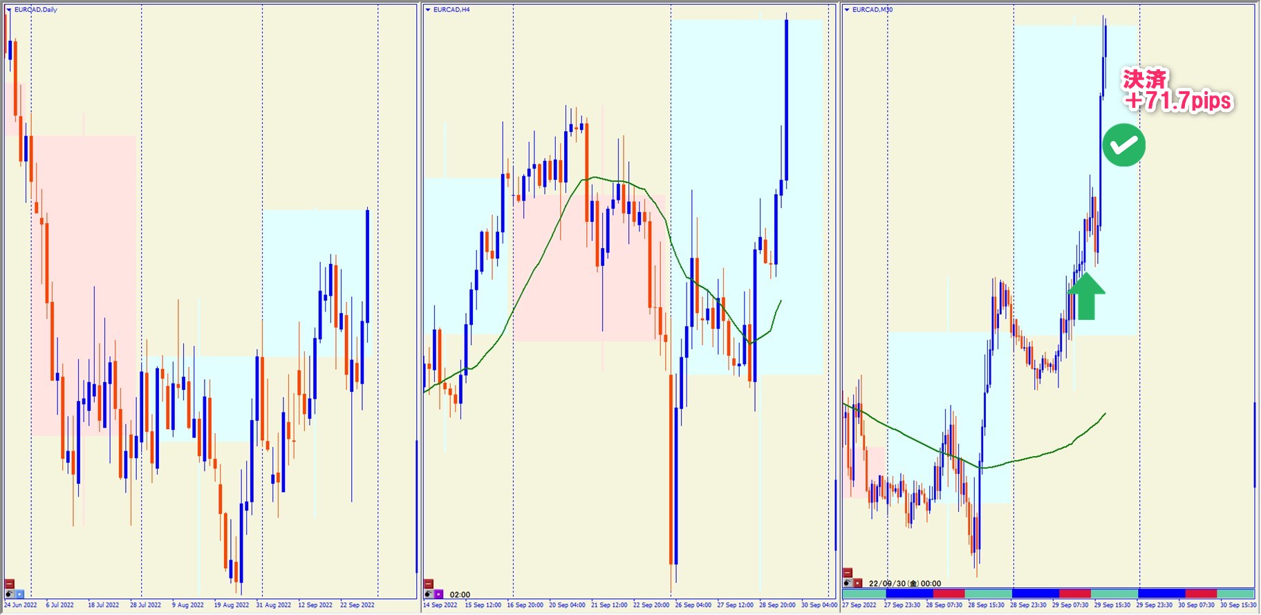 2022.9.29 17:00 EURCAD ロング +71.7pips